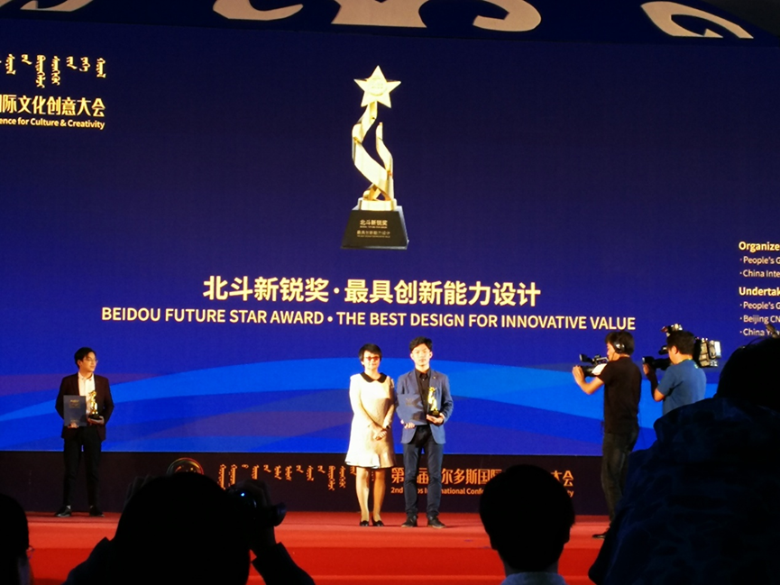 据悉,鄂尔多斯国际创意大赛共设立280万元奖金与3亿文化产业孵化基金,分别设有5个北斗新锐奖及15个北斗提名奖。大赛共征集近20个国家参赛者提交的3183件作品。本次大赛旨在响应国家“一带一路”发展倡议,扩大文化创意领域对外交流合作,打造国际文化创意原创作品与交流交易平台。此次设计作品获得鄂尔多斯文化产业孵化基金支持,后期将继续进行产业转化。