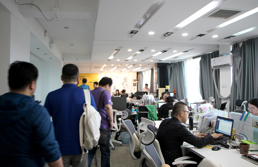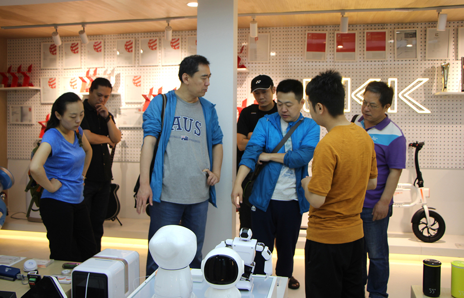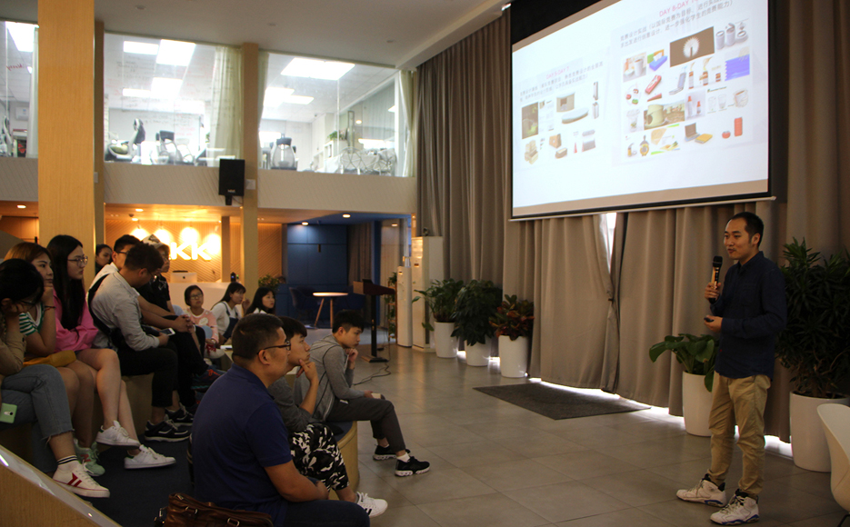 王晓丹院长为考察组介绍了洛可可创新设计集团的概况,带领考察组参观了洛可可北京总部,包括展厅、办公环境及培训场地等,并为考察组介绍和简单演示了展厅内的产品。随后考察组重点参观了洛可可旗下的洛客平台及洛可可创新设计学院。现任洛可可创新设计集团设计主管的张正峰,毕业于yl8cc永利官网工业设计学院,对于学院课程的设置和实际工作中对能力的需求和培养有着切身的体会,他也与考察组成员进行了深入对话。