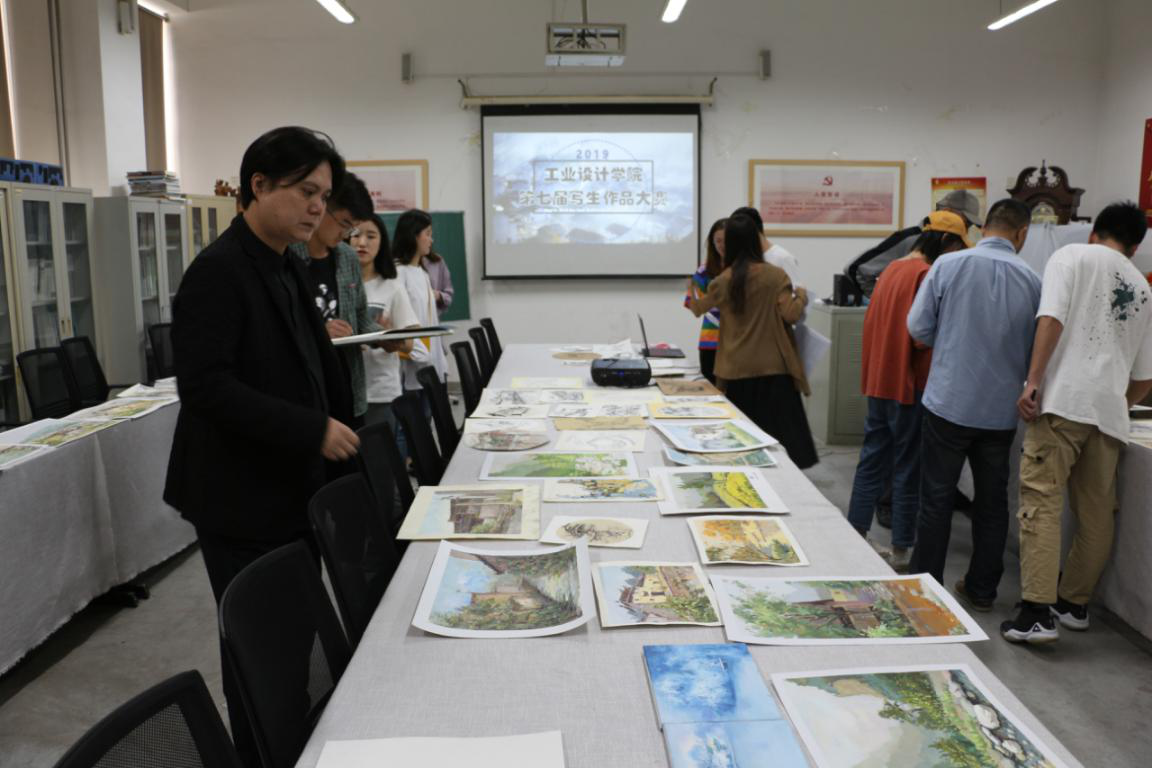 为展现学生写生期间的优秀成果,5月10日中午,工业设计学院于长清校区三楼多媒体教室举行了第七届写生作品大赛评选活动。工业设计学院副院长张焱、贾红晨、陈淑光三位老师担任本次比赛的评委。党总支书记张振羽、副书记姬升果、辅导员李训一参加了本次活动。