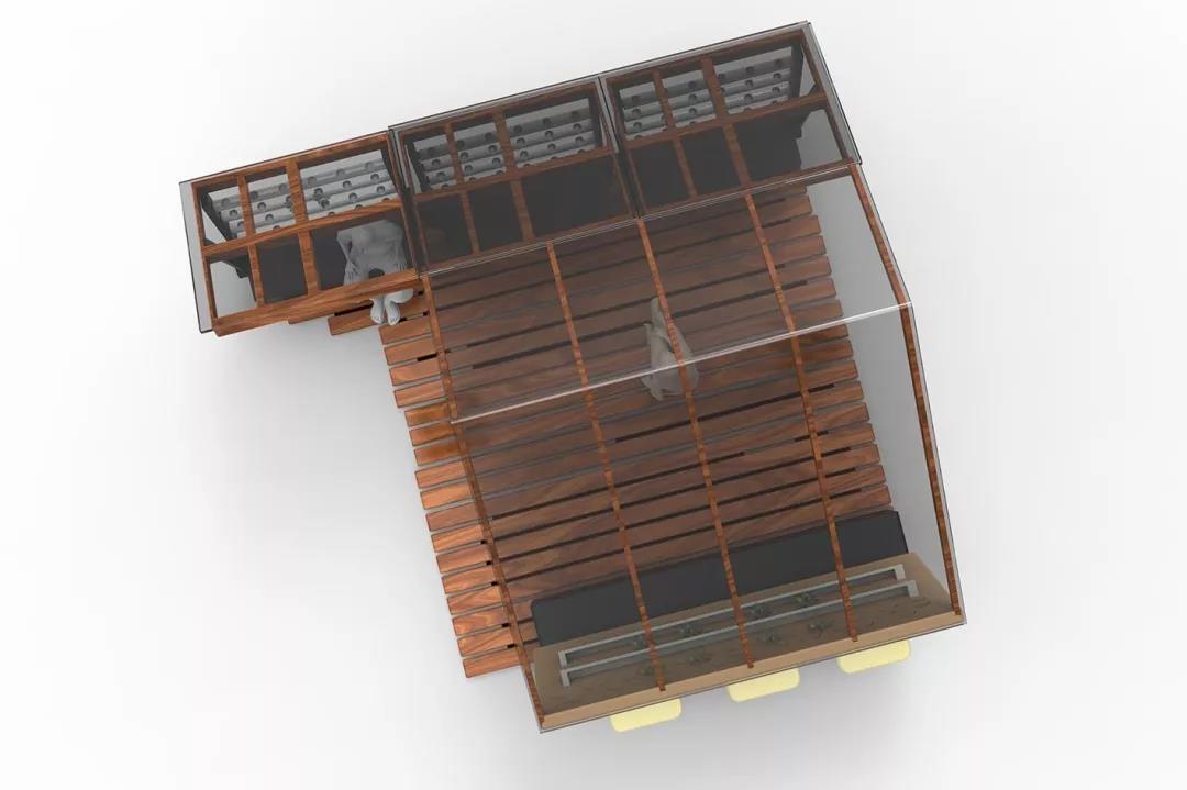 共享瑜伽仓给女性提供了安全便捷的瑜伽运动场所,外部造型上提取“莲花”的线条为造型基点,瑜伽仓内部运用智能恒温系统、新风系统、并配备AR影像、3D环绕音响、智能语音系统,并通过云端与APP链接,从而与用户进行实时反馈,使女性拥有更健康的生活方式和更好的生活状态。
