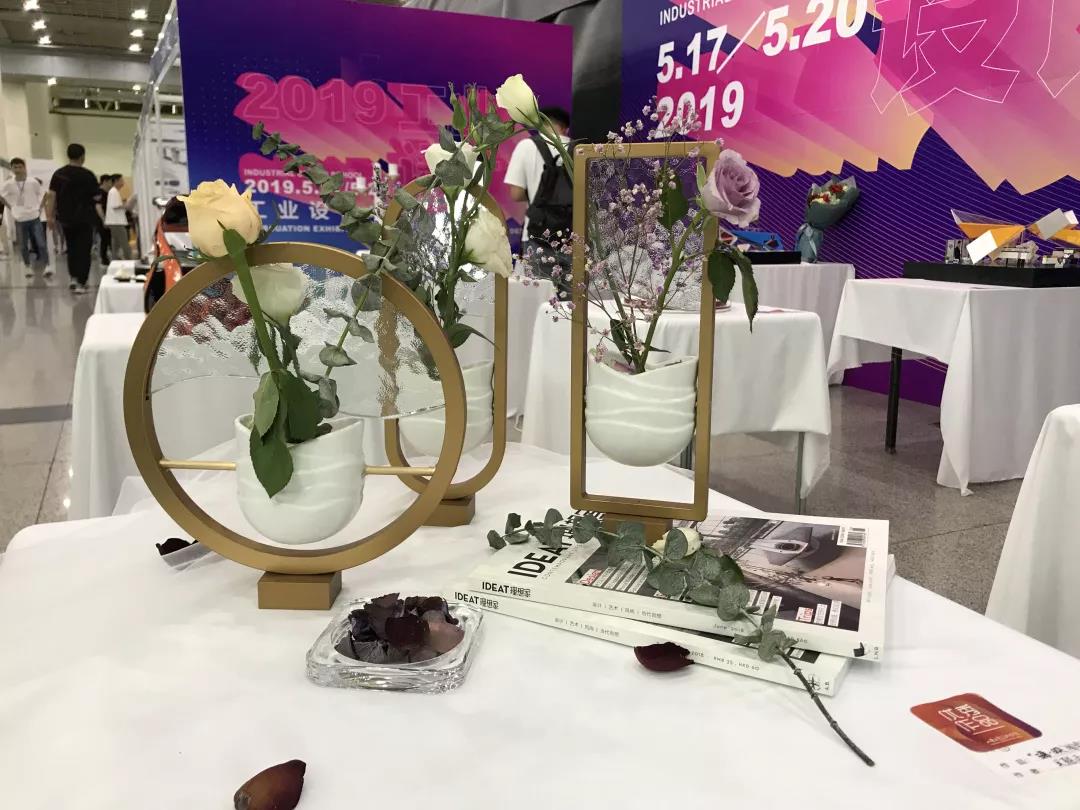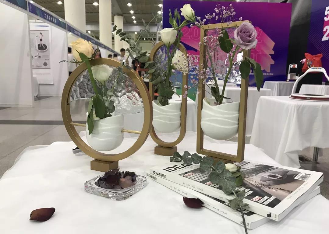 花器不仅作为一个容器载体,也是点缀生活的艺术品。花与花器相互交融,是人们陶冶情趣的寄情寄思之物。陶瓷造型采用花瓣层层包裹的效果,取自象征高洁典雅的兰花(蝴蝶兰)的轮廓。“水中月,镜中花”是此产品寓意的独到之处,通过水纹玻璃的凹凸质感代替镜面,既呈现出一种繁花朵朵的效果,又体现出倒映在水中朦胧的视觉效果。