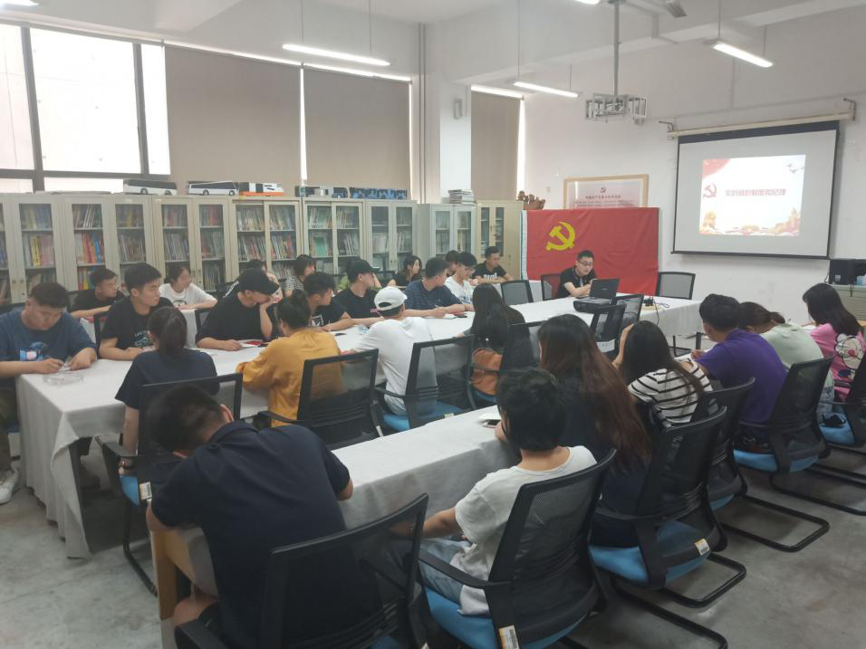 2019年6月3日中午,工业设计学院学生一支部书记李训一在长清校区三楼多媒体教室为本院入党积极分子上党课,2019年第1期入党积极分子培训班学员参加了此次课程。