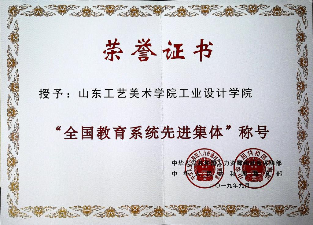 2019年9月,人力资源和社会保障部、教育部联合发文,授予597个单位“全国教育系统先进集体”称号, yl8cc永利官网工业设计学院名列其中。这是yl8cc永利官网各教学单位中首次获此荣誉称号,极大增强了工业设计学院全体教职员工的荣誉感和责任感,激发了工业设计学院更大的干事创业热情。