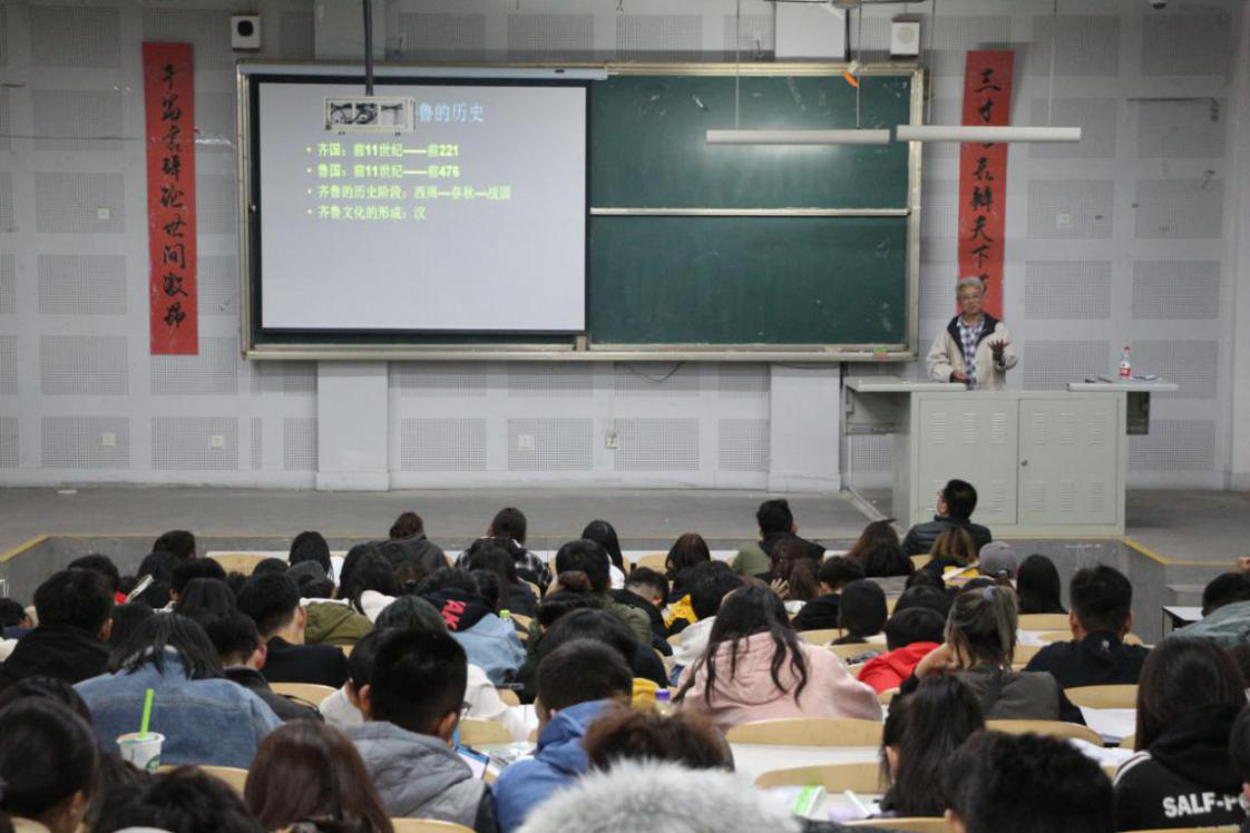 张从军教授开讲的主题为《图说齐鲁文化》。讲座伊始,张从军教授首先向大家介绍了齐鲁文化的起源形成与其重要的历史地位和文化传承。而后,通过大量的图片实例为在座同学剖析了具体实物中内含的文化精神,通过展示一件件不同时期的器物特征,使人们感受到齐鲁文化的博大精深。最后,张从军教授向在座同学阐释了齐鲁文化中自强不息的刚健精神、崇尚气节的爱国精神、人定胜天的能动精神、厚德仁民的人道精神对民族优秀传统精神的塑造,所产生的重要影响。