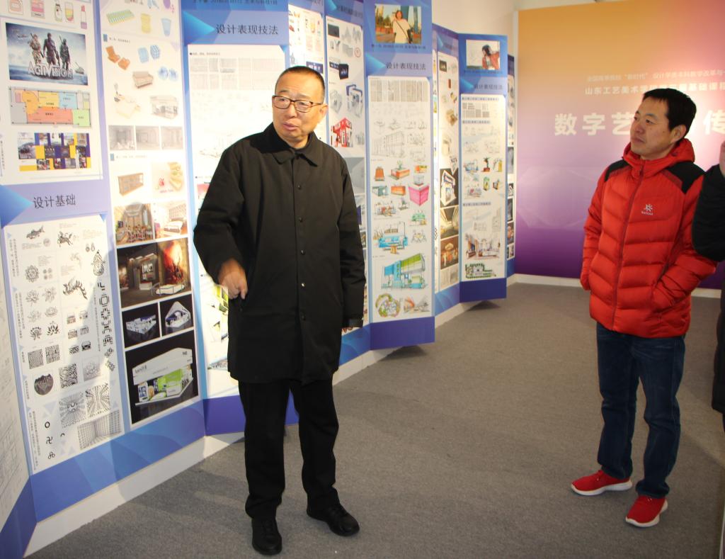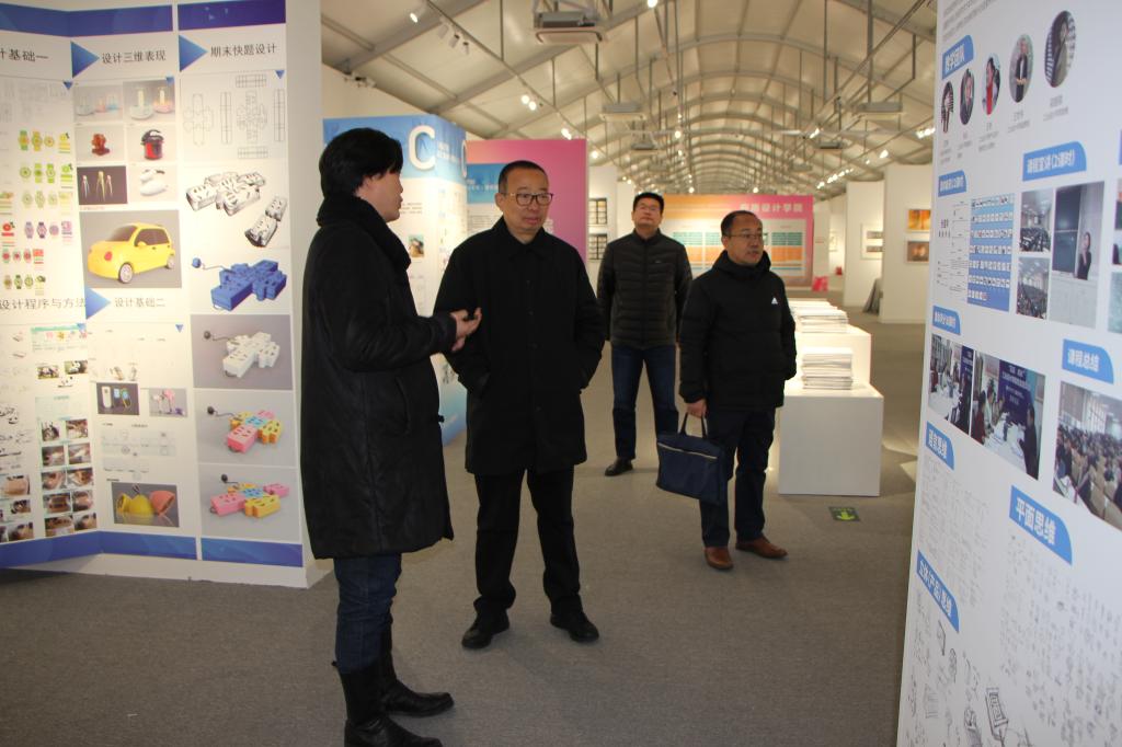 12月31日上午,yl8cc永利官网院长潘鲁生、副院长董占军参观指导yl8cc永利官网第三届基础课教学改革成果展工业设计学院展区,工业设计学院党总支书记张振羽、副院长张焱、党总支副书记姬升果陪同参观。