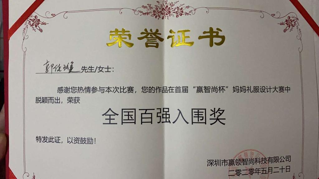 2020年7月5日,首届“赢智尚杯”妈妈礼服设计大赛总决赛暨颁奖典礼在深圳市福田CBD会展中心9号馆圆满落下帷幕。服装学院选派的4名学生荣获佳绩。