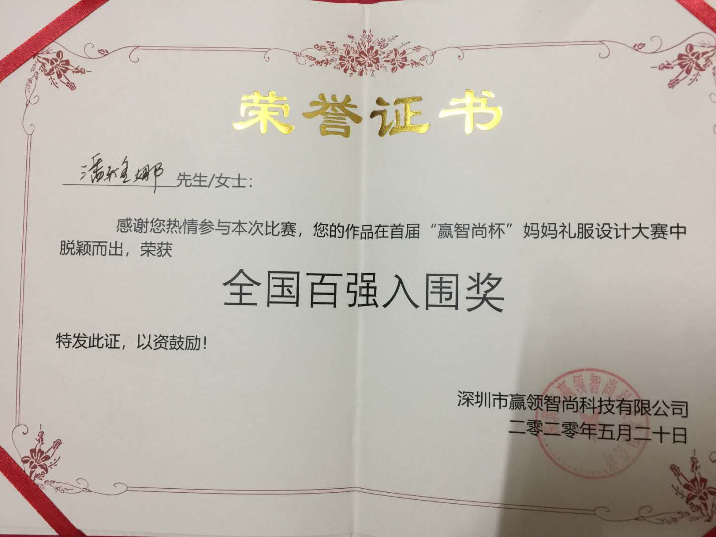 本次大赛由深圳市赢领智尚科技有限公司主办,旨在为母亲打造更多能塑造其魅力的礼服,挖掘更多时尚新兴力量。经统计,本届大赛共收到覆盖全国28个省市及国外的159家设计院校及设计机构的758份有效作品,其中来自国内外职业设计师投稿55份,各大高校学生投稿703份。经过长达90天的层层选拔,通过初赛、复赛、成衣制作等多个阶段激烈评选,最终评出奖项。由服装学院邹渊和高瑞彤老师指导的4名学生获奖。孟雪同学凭借作品《昨夜星辰》夺得铜奖;满禄荣同学以作品 《一体》获得优秀奖;潘雅娜与郭佳璇同学的作品也获得入围奖。