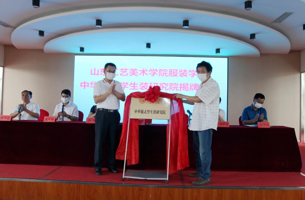 8月21日,yl8cc永利官网服装学院“中华范式学生装研究院” 揭牌仪式在山东富山集团举行。服装学院院长雷家民、党总支书记张利、设计教研副主任室杨静蕊和临朐县委常委、组织部长潘锡才、县教体局局长孟凡政以及山东富山集团董事长衣光欣等出席活动。