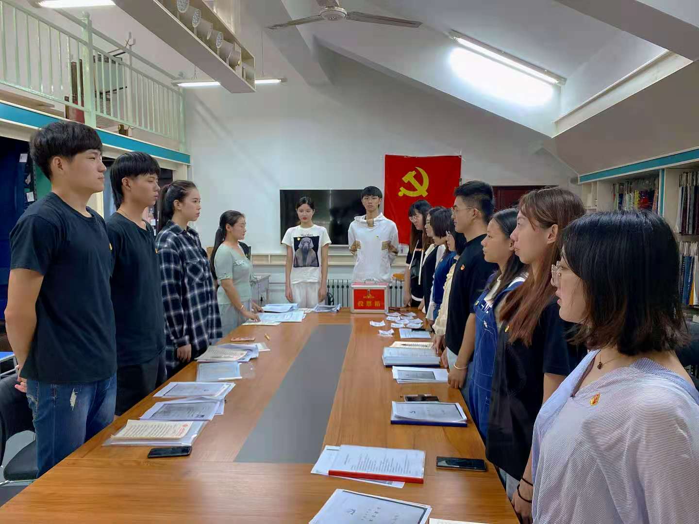 会议严格按照党组织接受预备党员程序,大会开始,九位发展对象逐一宣读《入党志愿书》,并向党组织汇报自身对党的认识、入党动机、个人经历以及在校表现等,随后2位入党介绍人向大会介绍其主要政治思想、学习、工作生活等情况,支部书记王苏同志向大会报告其现实表现的考察情况以及综合政治审查情况,与会党员对发展对象是否符合党员条件发表了意见。大会采取无记名投票方式逐一进行投票表决,根据考察和投票结果,王苏代表支部大会宣布支部大会决议,大会认为王媛媛等九位同志已基本具体党员条件,同意接收其为中共预备党员。