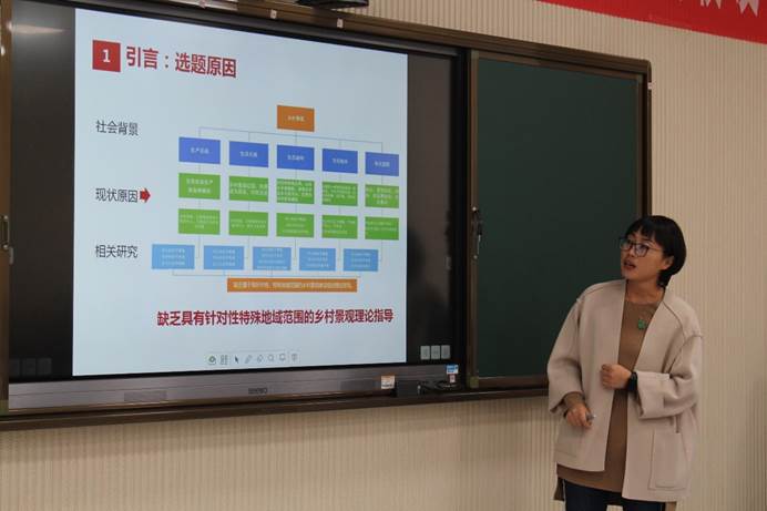 而后,学院教师吕桂菊就当今的鲁中山区乡村景观特质、模式及规划设计进行了概要讲解。副院长胡英盛结合承担的国家和省级课题的研究情况向校友进行了汇报。
