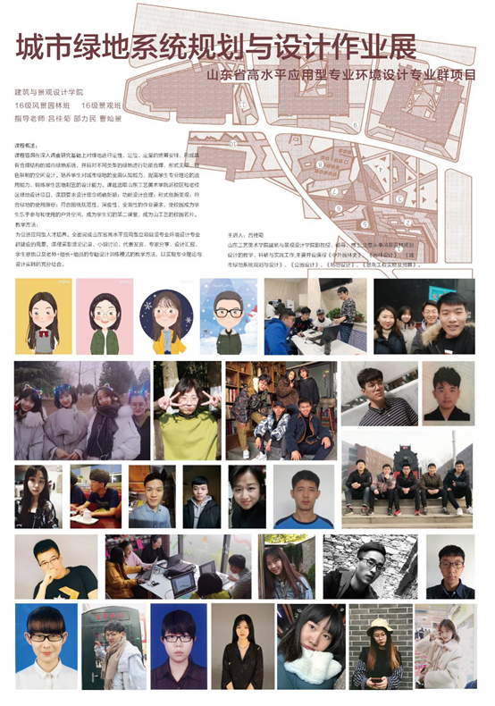 3月15日,2016级风景园林班和2016级景观班在教学楼举行了由吕桂菊老师指导的城市绿地系统规划与设计课程作业展。