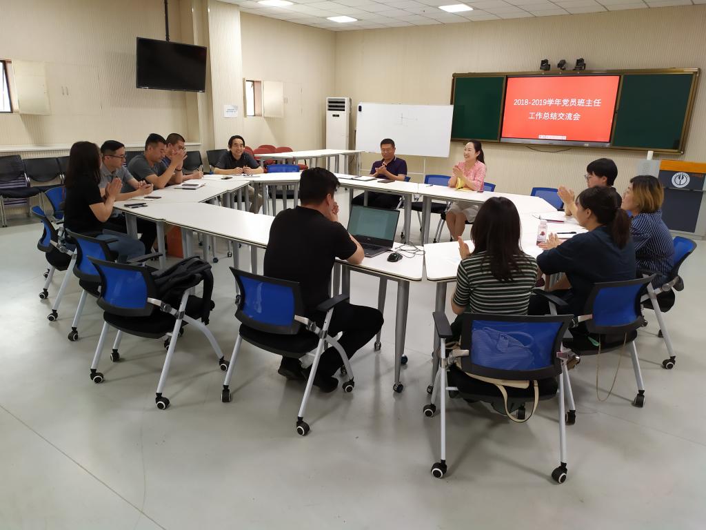 首先,娄彦结合PPT汇报了自己担任班主任工作四年来的做法、经验和成果。之后,各位党员班主任依次发言,介绍自己2018-2019学年开展的具体工作及特色做法。大家对班主任工作过程中发现的问题、学风建设、学生教育与管理中需要注意的事项等进行了深入而热烈的讨论。娄彦对下一学年的工作进行安排部署,对各位党员班主任的无私奉献和辛勤付出表示感谢,希望各位老师能够做好日常工作记录,及时梳理与总结,加强互相之间的工作交流,有力的促进优良学风的形成,推动学院更好的发展。