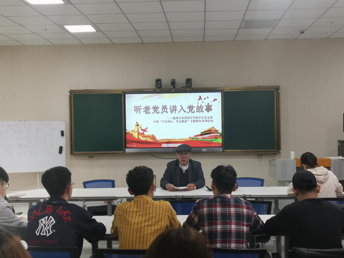 按照学校“不忘初心、牢记使命”主题教育安排部署,建筑与景观设计学院学生党支部于10月31日上午在智慧教室开展“听老党员讲入党故事”主题活动。学院邀请优秀老党员朱绍云同志担任主讲,学生第一支部书记褚丁庆主持,全体学生党员参加。