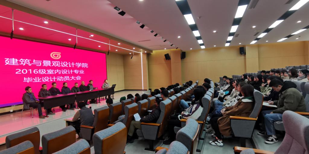 26日下午,在阶梯一教室召开了2016级室内设计专业毕业考察总结大会暨毕业设计动员大会。建筑与景观设计学院党总支副书记娄彦、室内党支部全体党员、室内教研室全体毕业设计指导老师,以及16级室内专业全体同学参加会议。
