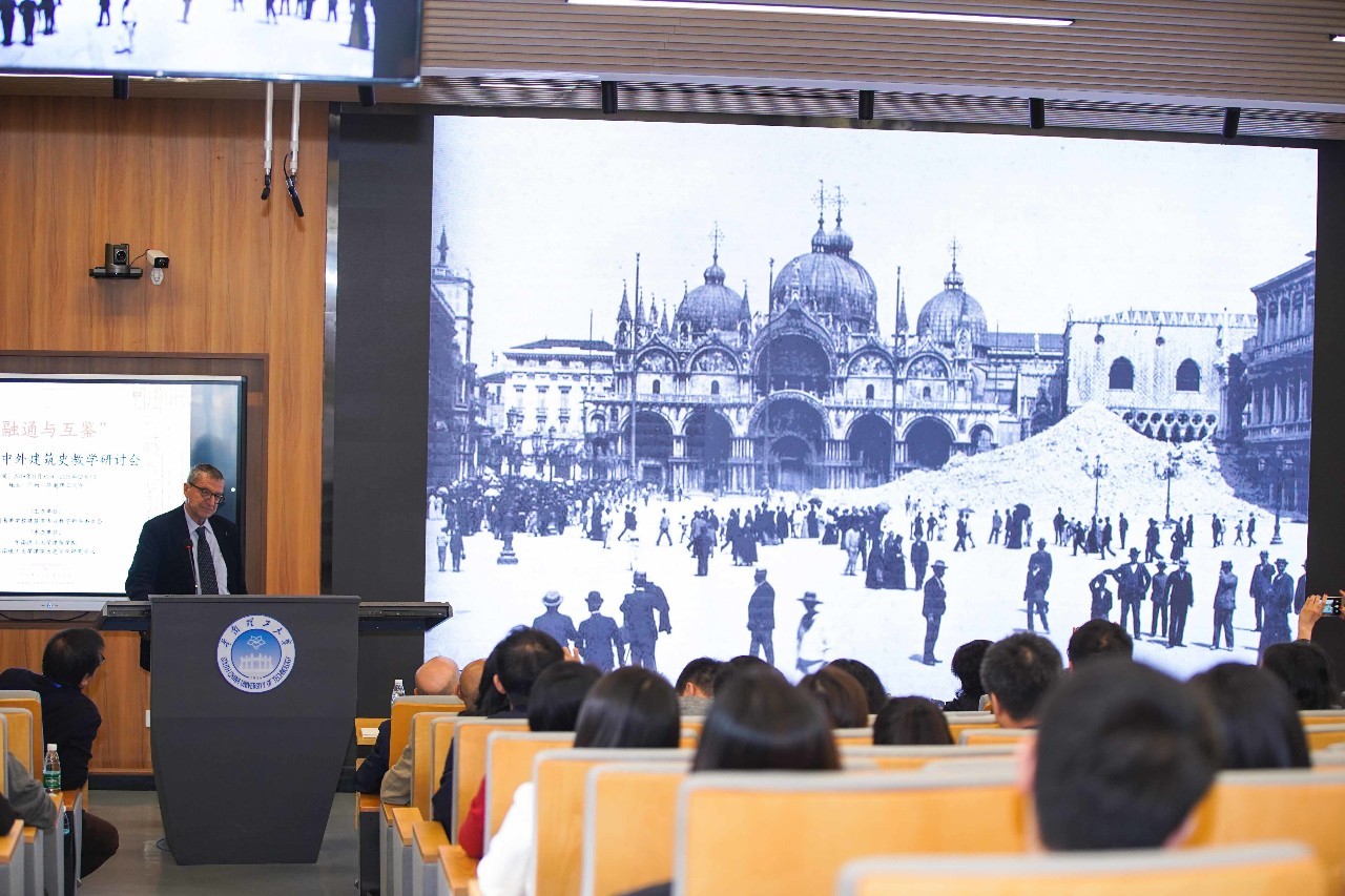 开幕式后,大会进行了主旨报告。东南大学建筑学院陈薇教授、华南理工大学建筑学院程建军教授、威尼斯建筑大学Enrico Fontanari教授、都灵理工大学Piccoli Edoardo教授分别以《源与流─东南大学建筑学院以历史教学为平台的跨学科设计探索》、《材斗与瓦吉─中国古建筑设计模数探讨》、《Venice and the modern》、《Twists and turns of a conflict between local narratives and internationalism. Teaching Architectural history in Italy》为主题作了主旨报告。