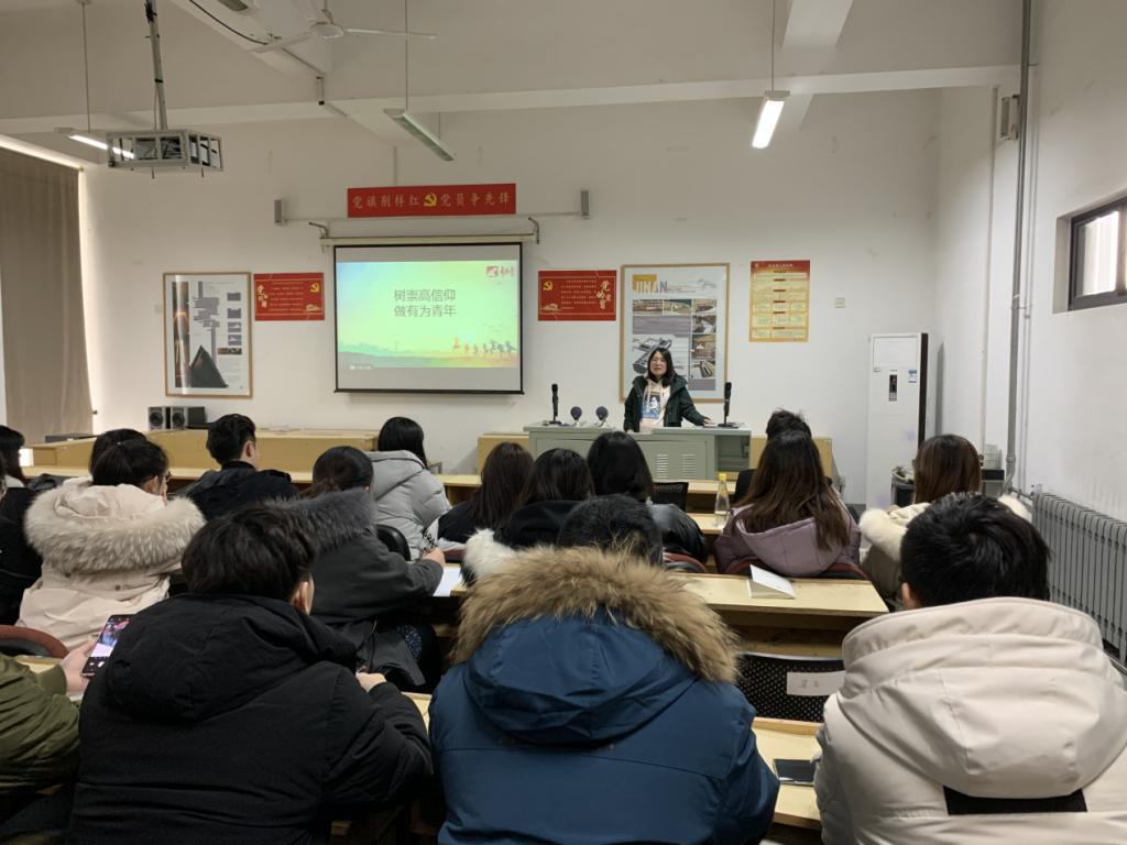 本次党课培训的主题为 “树崇高信仰,做有为青年”,褚丁庆从理想信念的内涵及重要性、树立崇高理想信念的内容、坚定理想信念,在实现中国梦实践中放飞青春梦想三个方面展开。她指出,理想信念是中国共产党人的精神之钙,坚定理想信念能为我们明确目标,提供动力,提升精神境界;督促同学们树立对马克思主义的信仰、对中国特色社会主义的共同理想以及对共产主义的信念;最后褚丁庆引用习近平总书记在北师大考察座谈时对青年大学生的要求为同学们坚定理想信念提出明确方向,她要求同学们要爱国、励志、求真、力行。讲解过程中,褚丁庆以多个人物事迹启发同学们,内容讲解透彻,鼓励同学们积极进取,不怕困难,坚定理想信念。