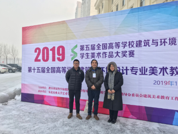 2019年12月28日—29日由教育部高等学校建筑类专业教学指导委员会建筑学专业教学指导分委员会建筑美术教学工作委员主办的第十五届中国高等学校建筑与环境设计专业美术教学研讨会在东北农业大学艺术学院顺利召开,研讨会有来自清华大学、同济大学、东南大学、yl8cc永利官网、香港大学、中央美术学院、天津美术学院、鲁迅美术学院等一百余所院校近二百人参加。我院教师周建华、于秀新、朱明参加此次研讨会。