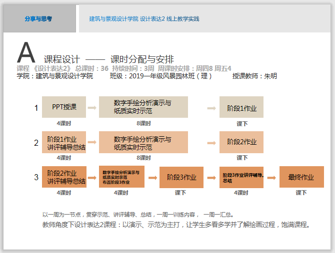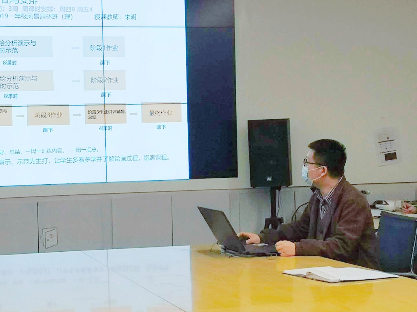 会议由教务处孙磊处长主持,副院长董占军全程参加了此次分享会。首先由教学单位汇报教学情况,然后是教师代表发言。建筑与景观设计学院汇报了前三周授课情况,从面对的问题、解决的方法、教学结合防疫设计三方面进行了总结汇报。朱明老师就《设计表达2》进行了网络教学经验交流与分享。汇报了在“思考、求变、创新、拓展”中做好教学模式创新,探索出适合理科生特点的设计表达,以及为后续专业设计课程打好造型基础的方法。重点分享了基于受众的教学设计及创新在线教学方法。教学经验交流还分享了其他7位教师的典型经验与成果,为共同探讨在线教学经验,创新网络教学方法,切实促进在线教学质量奠定了基础。