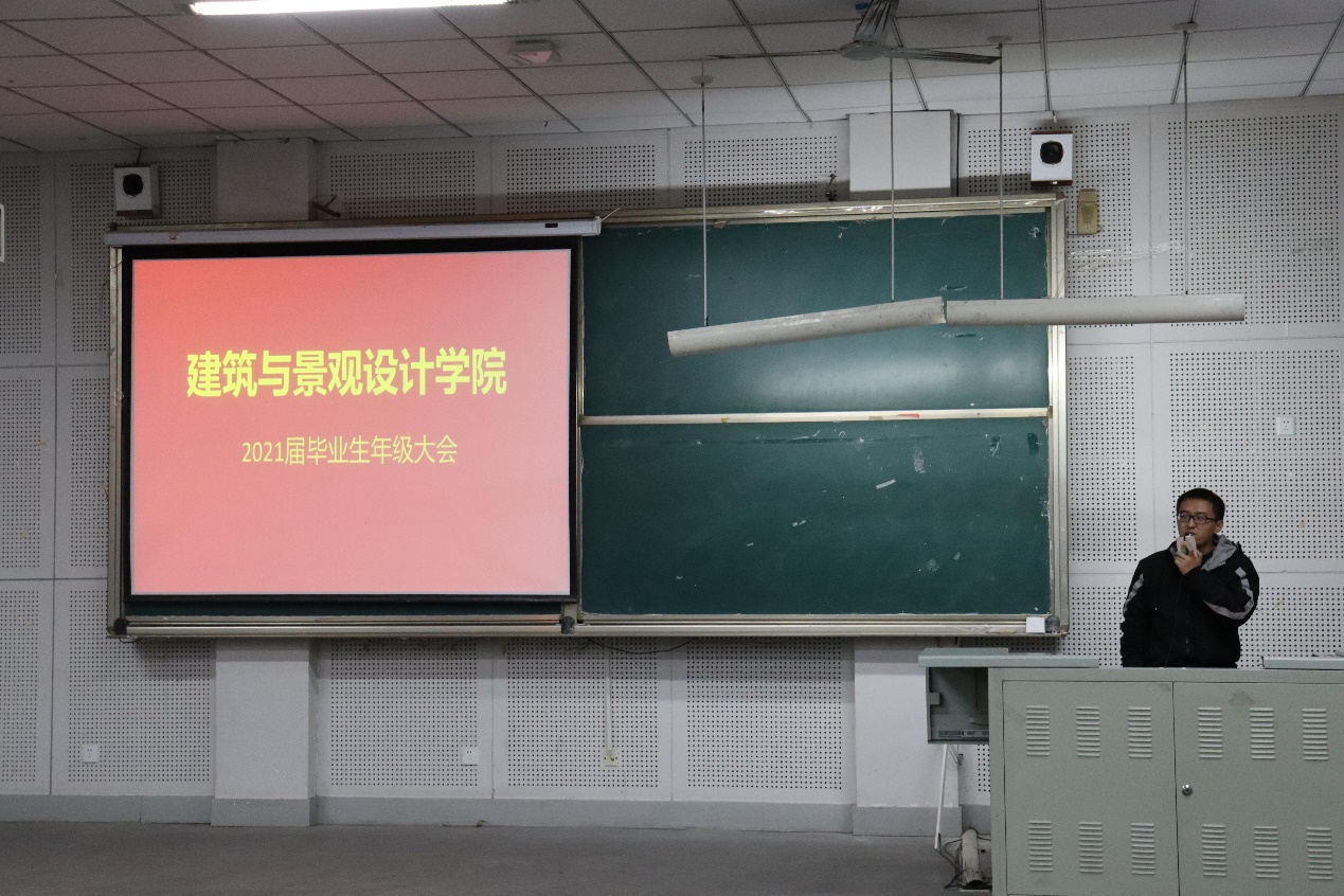 11月17日下午,建筑与景观设计学院于综合楼三合堂召开了2021届毕业生年级大会。会议由辅导员陈铁主持,2016级、2017级全体毕业生参加。