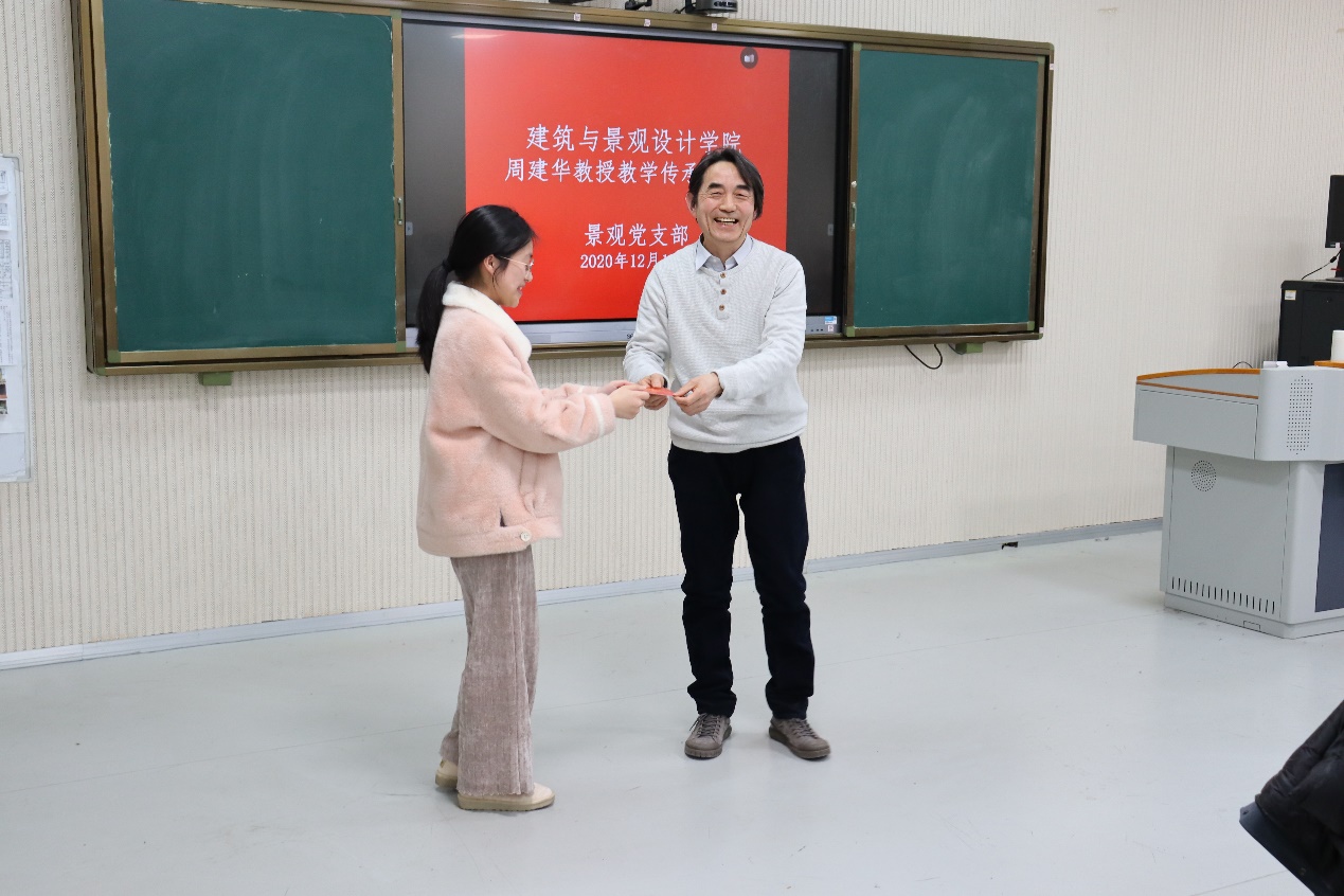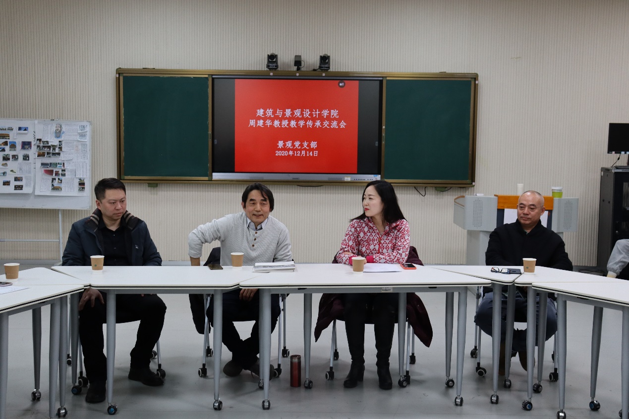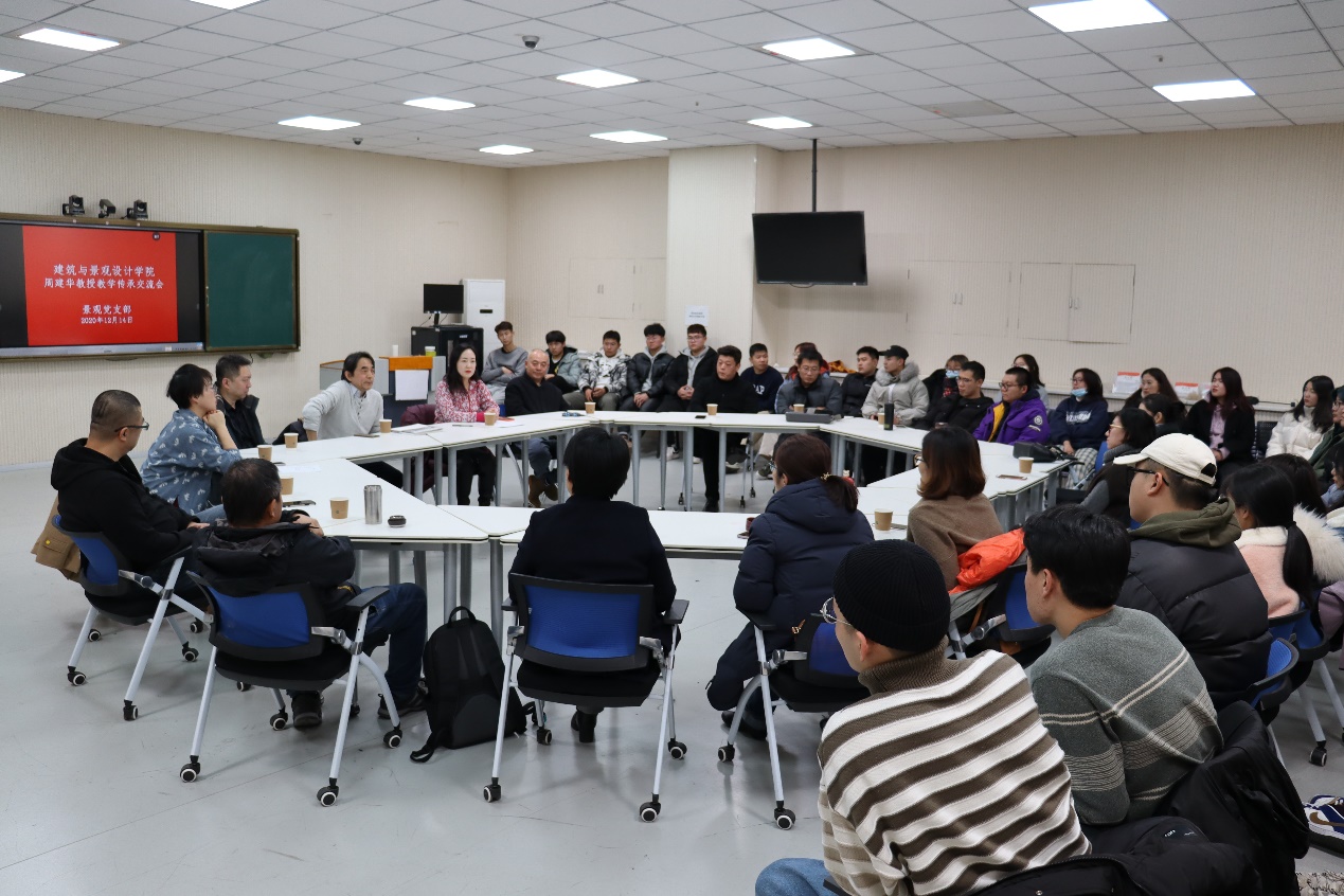 12月14日下午,建筑与景观设计学院在智慧教室举办周建华教授教学传承交流会,会议由景观党支部承办,景观党支部书记吕桂菊主持会议,建筑与景观设计学院师生代表积极参加。