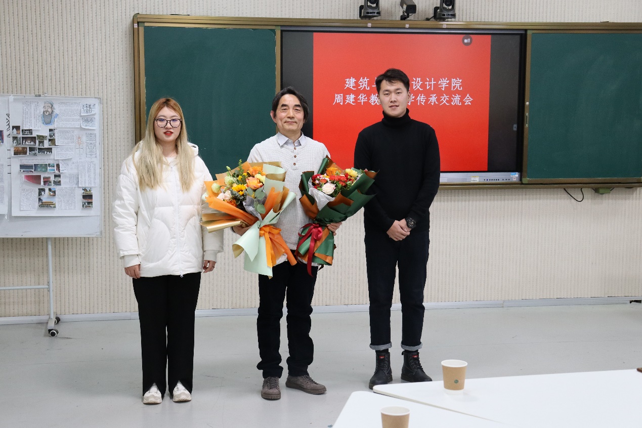 随后,建筑与景观设计学院党总支副书记娄彦、副院长沙重龙先后发言,向大家介绍周建华教授严谨的师德师风、扎实的专业素养和高尚的胸襟情怀,并代表学院班子和全体师生向周建华教授表达敬意和美好的祝福。