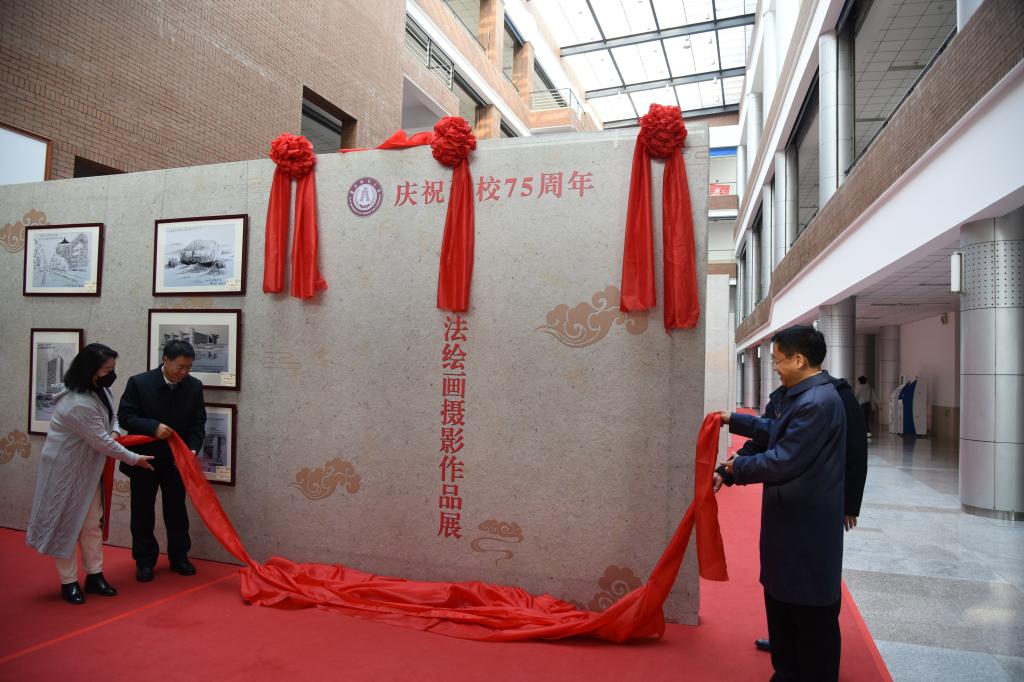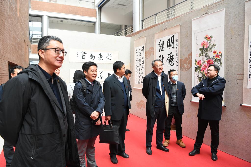 随后,校党委书记孙杰光,校党委副书记、校长童猛,校友代表刘庆,教师代表徐家尊共同为书画摄影作品展揭幕。