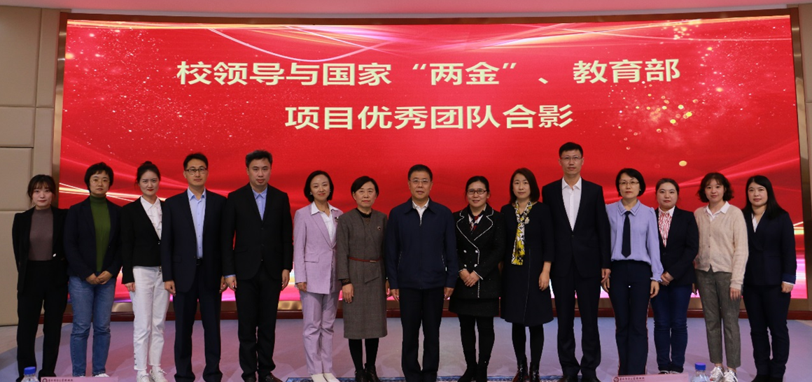 首先,校党委副书记、校长童猛宣读了关于表彰2021年度国家“两金”、教育部项目优秀团队的决定,并对获得表彰的优秀团队表示祝贺。他希望优秀团队在今后的科研工作中继续加强团队协作,潜心研究、开拓创新,产出更多高水平科研成果,同时号召广大教师和科研团队要不断增强责任感和使命感,全面激发科研活力,努力提高科研水平,为建设国内知名高水平财经大学贡献力量。随后,童猛校长、王菁华副校长与优秀团队成员合影留念。