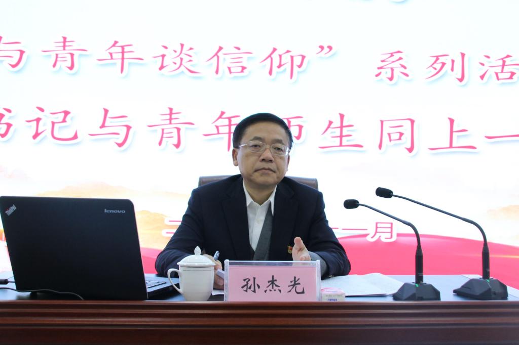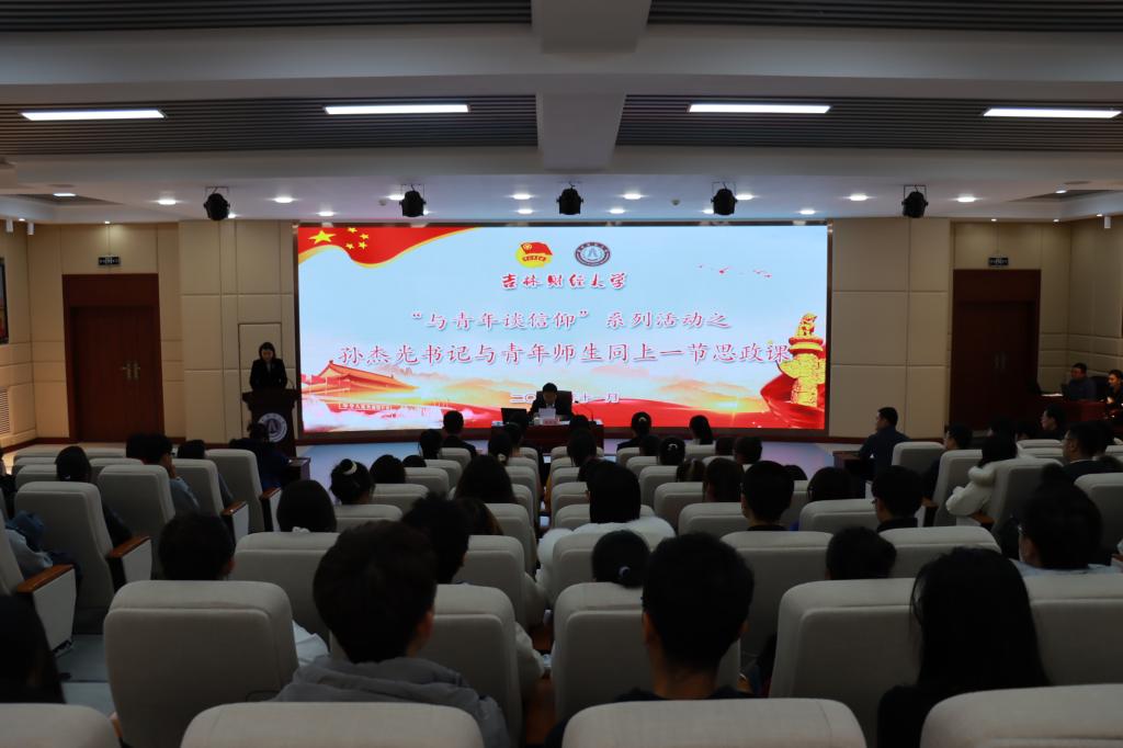 本网讯(校团委 供稿)为深入学习贯彻党的十九届六中全会精神和习近平总书记在庆祝中国共产党成立100周年大会上的重要讲话精神,积极响应吉林省委书记景俊海在“创业有你 就在吉林”和首届吉林省校友人才促进吉林振兴发展大会上的讲话精神,11月12日下午,Beat365在1102报告厅举行了“与青年谈信仰”系列活动之孙杰光书记与青年师生同上一节思政课活动,校党委书记孙杰光、全体团干部、青年教师代表和各学院的学生骨干参加了活动,思政课由校团委组织部部长张译丹主持。