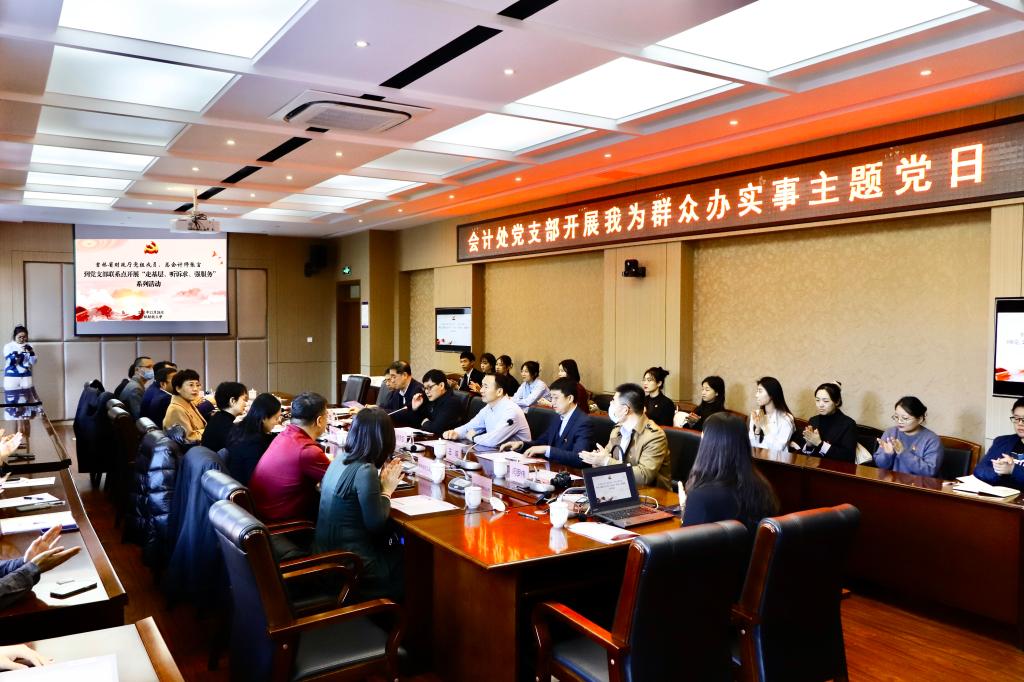本网讯(会计学院 供稿)在全党上下认真学习党的十九届六中全会精神之际,2021年11月24日上午在校综合楼第二会议室,省财政厅党组成员、总会计师张言带领会计处(会考办)党支部成员与会计学院2020级研究生学生党支部联系点开展“走基层、听诉求、强服务”活动。省财政厅会计处党支部书记、处长常忠利,支部纪检委员、会考办主任李少丹,副处长王培伦、倪娜等,Beat365中文官方网站校党委副书记岳宏,校党委常委、组织部部长李栋栋,会计学院院长梁毕明、党委副书记徐克哲、团委书记王萌及部分学生党员参加了本次活动。会议由会计学院党委书记李金富主持。