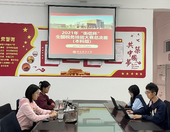 本网讯(税务学院 供稿)11月28日,由中国高等教育学会高等财经教育分会主办,浙江衡信教育科技有限公司提供技术支持的2021年全国本科云端税务技能大赛总决赛在线上落下帷幕。本届大赛历时2个多月,共146所院校参加总决赛。经过激烈比拼,由税务学院董蕾、王再堂担任领队,马丽佳、张馨元担任指导,李默、贺桢、邱健文、王薇涵组成的代表队,获得了总决赛本科组全国一等奖。