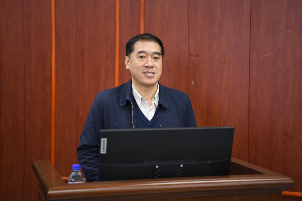 本网讯(国际经济贸易学院 供稿)为深入学习贯彻习近平新时代中国特色社会主义思想,深入学习领会党的十九届六中全会精神,积极响应吉林省委书记景俊海“创业有你、就在吉林”的号召。11月30日上午,校党委副书记岳宏以《信仰铸魂、青春筑梦,做新时代国家经济贸易的栋梁之才》为题,将十九届六中全会精神与其研究方向相结合,为国际经济贸易学院师生讲授了一场深刻生动的思政课。思政课由国际经济贸易学院党总支书记刘宇涛主持,学院领导班子、各教研室主任、教师代表、全体辅导员及全体研究生参加了会议。