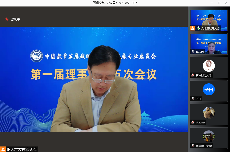 本网讯(人事处 供稿)2021年12月8日,中国教育发展战略学会人才发展专业委员会(以下简称“人才发展专委会”)第一届理事会第五次会议在北京召开。会议采取线上+线下方式进行,理事会成员参会。中国教育发展战略学会常务副会长张双鼓到会致辞、中国教育发展战略学会副会长兼人才发展专委会理事长李志民作讲话。会议审议通过了增补人才发展专委会理事单位、理事、会员名单,Beat365经审议通过为新增理事单位,人事处处长王丽萍为理事。