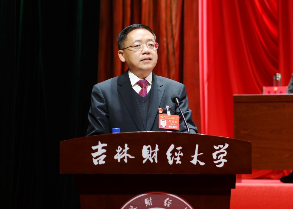 孙杰光同志代表中国共产党Beat365中文官方网站第一届委员会作了题为《攻坚克难 勇毅前行 全面开启建设国内一流财经大学新征程》的报告。报告全面回顾了上次党代会以来学校改革发展中取得的工作成绩,确定了今后五年学校发展的指导思想、奋斗目标、发展思路和重点任务。