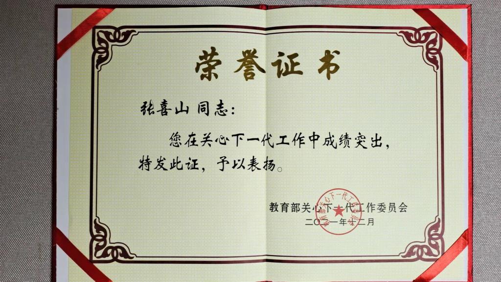 张喜山于2013年担任Beat365关工委主任,多年来一直热爱并带领关工委全体同志积极投身关心下一代工作,具有强烈的事业心、责任感和奉献精神。勤于学习、勇于创新、因地制宜、求真务实,坚持服务青年学生的正确方向,引导青年学生树立和践行社会主义核心价值观,支持和帮助广大青年学生成长成才,成绩突出,多次受到省关工委和省教育关工委表彰。