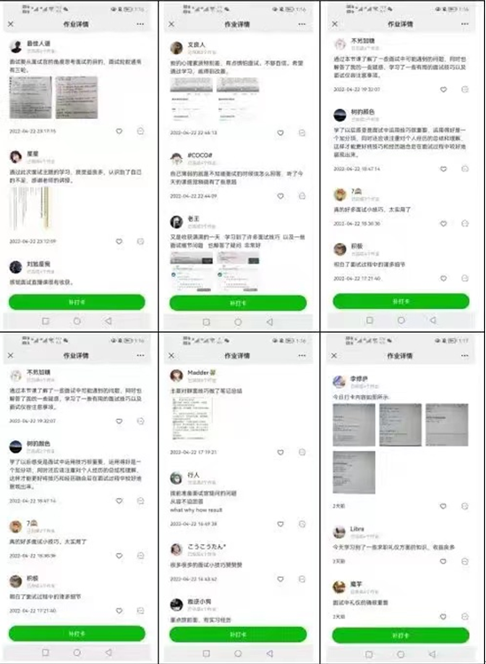 本次线上求职训练营共计438名同学参加。同学们在活动过程中积极参与,课程打卡互动完成率保持在70%以上。大家还踊跃分享了自己的学习感受,纷纷表示课程质量、直播内容和自身需求较为匹配,学习过程中收获颇丰。