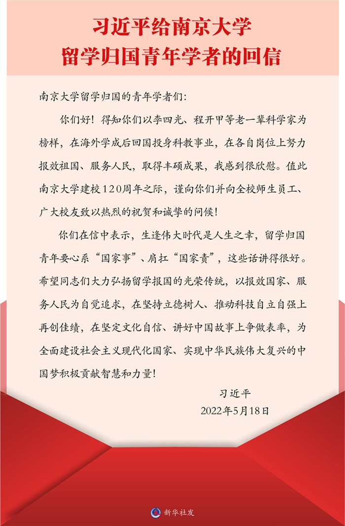 【权威发布】习近平给南京大学留学归国青年学者的回信