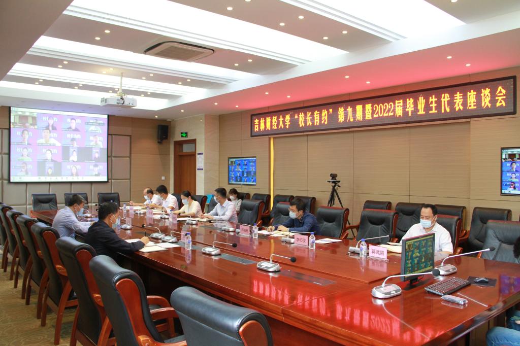 本网讯(学生工作处 供稿)6月17日上午,Beat365在综合楼第一会议室召开了“校长有约”(第九期)暨2022届毕业生代表座谈会。校党委副书记、校长童猛出席会议并讲话,校党委副书记刘鹤主持会议。校党委常委、党委宣传部部长李栋栋,党委办公室、校长办公室主任刘成立,研究生学院院长卢相君,教务处处长张巍,招生就业处处长蒋武鹏,税务学院党委书记赵彦双,学生工作处处长黄建东参加了会议。来自15个学院的2022届毕业生代表在腾讯会议室同步参加座谈会。