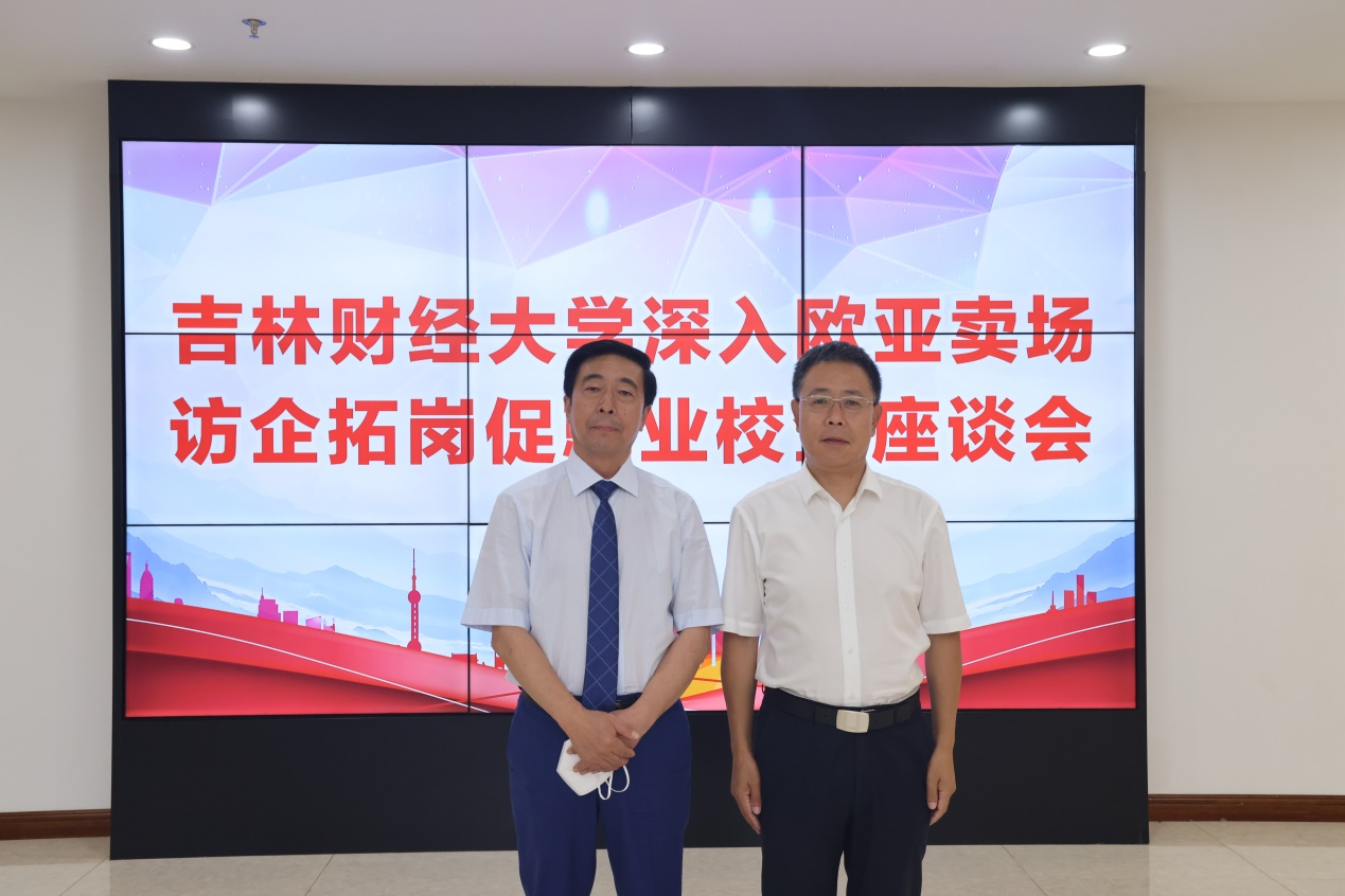 本网讯(招生就业处 供稿)为贯彻落实党的十九届六中全会精神和国务院“稳就业、保就业、促就业”指示精神,按照教育部办公厅《关于开展全国高校书记校长访企拓岗促就业专项行动的通知》工作要求,准确把握就业市场形势,深入落实就业工作“一把手”工程,千方百计开拓更多就业创业岗位和机会,7月22日下午,由党委副书记、校长童猛带队到长春欧亚卖场有限责任公司开展访企拓岗促就业活动。