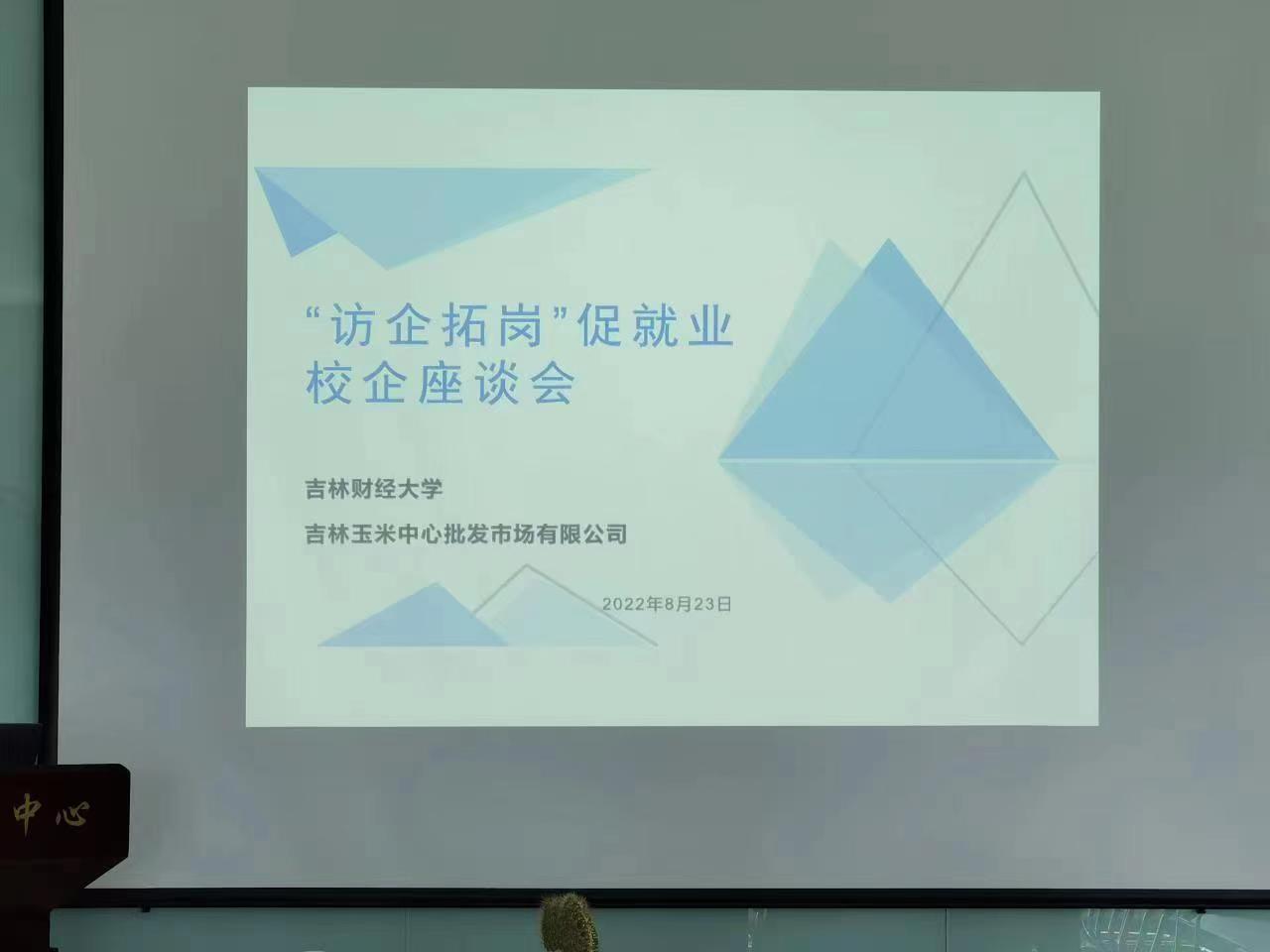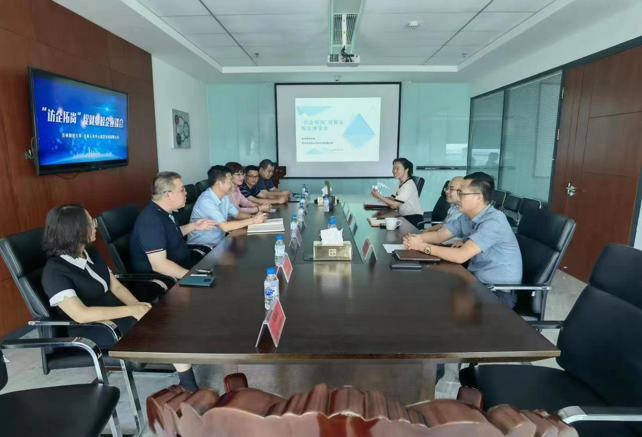本网讯(应用数学学院 供稿)为贯彻落实教育部办公厅《关于开展全国高校书记校长访企拓岗促就业专项行动的通知》的工作要求,全面深化校企合作,为毕业生开辟更多就业创业岗位和机会,促进毕业生高质量就业,8月23日下午,副校长于金欢带领应用数学学院班子成员、学院系(室)主任、学生辅导员等人员走访吉林玉米中心批发市场有限公司开展访企拓岗促就业活动,并举行了座谈会。吉林玉米中心批发市场有限公司总裁袁强、常务副总裁袁维秋参加了座谈会,座谈会由吉林玉米中心批发市场有限公司人事主管张明妍主持。