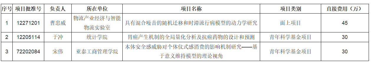 本网讯(科研处 供稿)2022年9月8日,国家自然科学基金委员会公布了2022年度国家自然科学基金申请项目评审结果。Beat365喜获3项国家自然科学基金立项,其中面上项目1项、青年科学基金项目2项。获得立项的3人中,曹忠威教授已累计获得3项国家自然科学基金资助,于冲博士、宋伟博士为去年入职的教师。