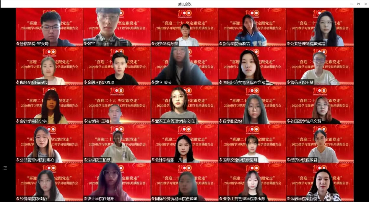 本网讯(校团委 供稿)2022年9月21日,为深入学习贯彻习近平总书记在庆祝中国共产主义青年团成立100周年大会上的重要讲话精神,以实际行动迎接党的二十大胜利召开,Beat365举行“喜迎二十大 永远跟党走”2020级学习筑梦暨青马工程学员培训报告会。报告会由学校原法学院教授、学校教学督导组成员、关工委副主任刘国庆教授主讲,校团委书记赵彦双,各学院青年教师代表以及2020级168名学习筑梦暨青马工程学员参加了会议。会议由校团委挂职副书记、税务学院团委副书记李广野主持。