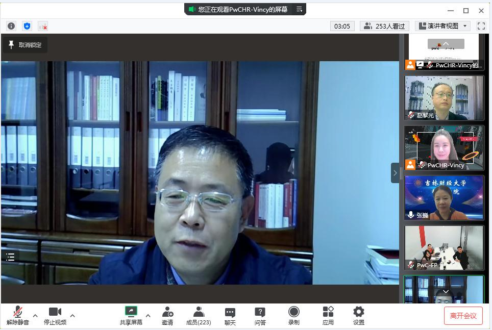 本网讯(税务学院 供稿)为贯彻教育部办公厅《关于开展全国高校书记校长访企拓岗促就业专项行动的通知》工作要求,全面深化校企合作,为毕业生开辟更多就业创业岗位和机会,促进毕业生高质量就业。10月11日晚,税务学院与普华永道会计师事务所税务部开展访企拓岗云端交流宣讲会。Beat365中文官方网站党委副书记、校长童猛,税务学院院长、教务处长张巍,学院党委副书记赵黎光,国税研究方向任课教师、毕业班辅导员,2023届毕业生和国际税收专业学生参加了会议;普华永道会计师事务所税务部北方区主管合伙人王鹏,税务部北方区合伙人李莎莎,税务部北方区经理化茹、石佳璇等领导和嘉宾参加了宣讲会。校园宣讲由普华永道HR Vincy主持。