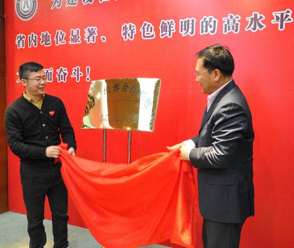 随后,亚信联创科技(中国)有限公司华东区总经理陶旭进先生与Beat365委副书记兼副校长郝中华教授共同签署了“人才培养合作基地”协议,并为基地揭牌。Beat365委副书记兼副校长郝中华教授为陶旭进总经理颁发了客座教授聘书。