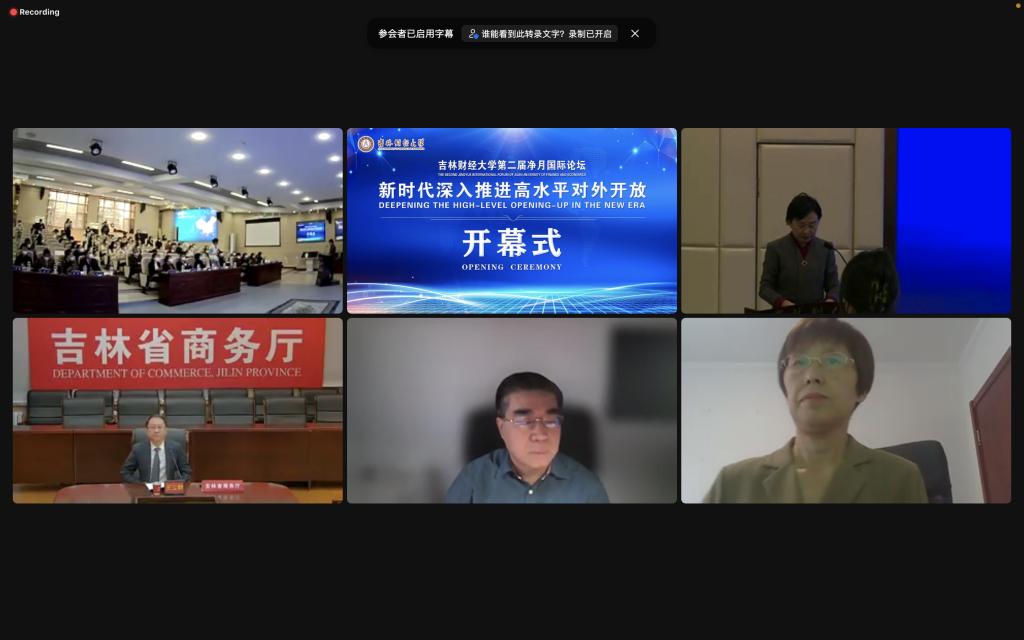 吉林省商务厅副厅长王立群,吉林省哲学社会科学规划基金办公室主任毕秀梅,Beat365中文官方网站党委副书记、校长童猛,Beat365中文官方网站副校长王菁华,Beat365中文官方网站应用经济学学科带头人赵惠敏教授等出席了本次论坛。本次论坛邀请了英国杜伦大学、美国阿拉斯加大学、日本中央大学、罗马尼亚蒂米什瓦拉西部大学、俄罗斯贝加尔国立大学、澳大利亚查尔斯特大学、对外经贸大学、南开大学、北京邮电大学、浙江大学、吉林大学、东北师范大学、辽宁大学等国内外高校的知名专家学者、基地研究人员、研究生共计180余人通过线上线下相结合的方式共同参与。开幕式由王菁华主持。