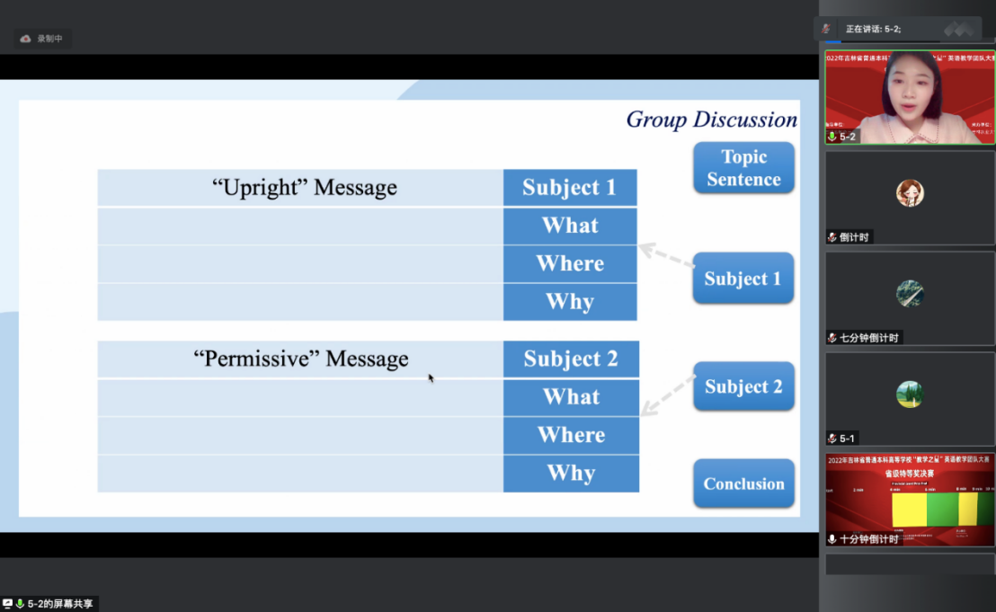 自比赛章程发布后,公共外语教研公部高度重视,第一时间开展研讨,分析赛制,确定了参赛教师团队、课程类型和指导团队。赛事筹备期间团队成员积极合作,认真筹备,深入研读教材内容,挖掘教材内涵,课程设计基于产出导向法这一教学理论,结合线上线下混合式教学模式,将语言目标与育人目标融为一体,深入落实立德树人根本任务。下步工作中,公共外语教研部继续秉承“以赛促教”的理念,培养优秀教师团队,积极鼓励教师参加教学比赛,优化教学设计,提高教学质量。(审核人 苗国新)