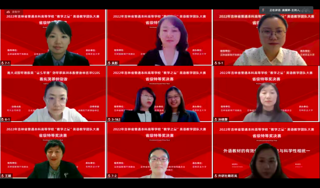 本网讯(公共外语教研部 供稿)2022年12月11日,2022年吉林省普通高等学校“教学之星”英语教学团队大赛决赛圆满结束,由Beat365公共外语教研部田源、冯功南、丁爽文、王佳琪四位老师组成的参赛团队代表学校参赛,最终凭借优异表现,获得吉林省总决赛一等奖。