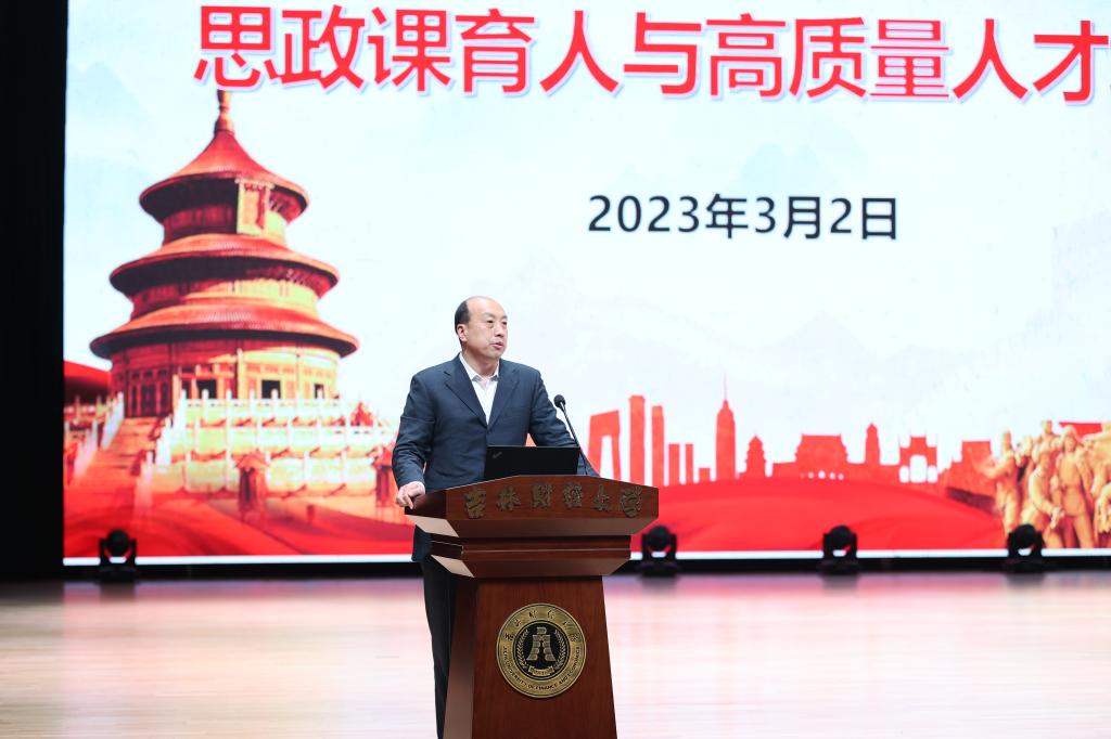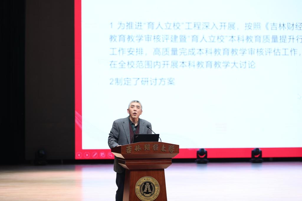 孙杰光书记从学校发展进程中的教育教学和人才培养工作维度,生动描绘了77年波澜壮阔的办学历史,深刻剖析了学校在各大历史发展阶段中取得的宝贵经验,充分印证了“一切向前走,都不能忘记走过的路,走的再远,走到再光辉的未来,也不能忘记走过的过去,不能忘记为什么出发。”他指出,要从辉煌厚重的办学历史中获得深刻启示、把握历史主动、汲取前行力量,必须始终坚持党对学校的全面领导;必须把立德树人作为根本任务,坚守“为党、为国,为区域经济发展培育财经英才”的初心使命;必须始终高度重视思想政治教育和思政课建设,全面推进“大思政课”建设;必须坚持深化教育教学改革,始终把提高人才培养质量作为永恒主题;必须把加强高素质专业化的师资和人才队伍建设,作为重要的基础性、战略性工作牢牢抓在手上;必须顺应和服从国家和教育体制机制改革的总要求,增强历史主动,抢抓历史机遇。他强调,系统全面准确学习贯彻党的二十大精神和习近平总书记关于教育的重要论述,将党中央重大决策部署,转化为管党治党、办学治校的有力举措。要着力在提高人才自主培养质量上下功夫,加快构建“大思政课”体系,推动思想政治教育工作守正创新。要胸怀“国之大者”“省之大计”“行之所需”,持续提升服务经济社会发展的能力。要秉承教书育人初心,加强师德师风建设,打造高素质专业化创新型师资队伍。他要求,各单位、各部门要深入领会本次会议精神,聚焦立德树人根本任务,聚焦学科建设、人才培养关键任务,主动服务国家重大战略需求和地方经济社会发展需要,深度融入东北全面振兴和吉林“一主六双”高质量发展战略,贯彻落实学校第二次党代会精神,深入实施“十四五”发展规划和“147战略”。以高质量党建引领学校高质量发展,走出一条使命驱动、战略引领、改革增能、内涵发展的高质量发展之路,在推动吉林全面振兴取得新突破的新征程上,奋力谱写建设国内一流财经大学的新篇章。