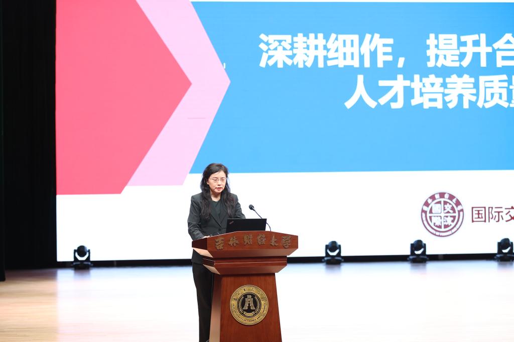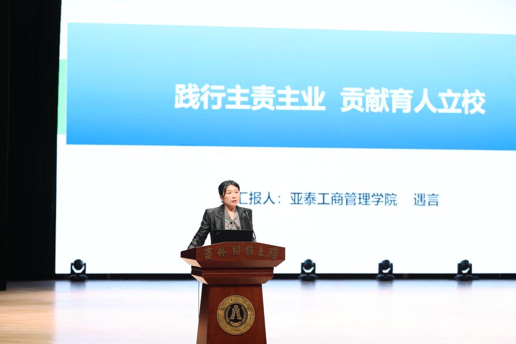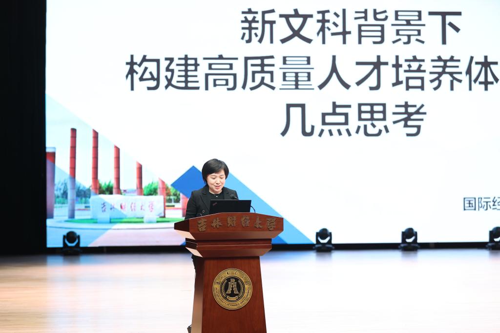 在“中国式现代化进程中的高质量财经人才培养”主题交流中,副校长马秀颖以“学科、科研、研究生教育与本科人才培养”为题目做了交流发言;副校长李宝永以“落实立德树人根本任务,做好管理服务育人工作”为题展开分享交流;副校长于金欢“以高水平教师队伍保障高质量人才培养”为主题对教师队伍建设提出工作思路;副校长王菁华以分享“本科教育教学大研讨研习心得”为出发点,指出全校上下应因势而谋、应势而动、顺势而为,大力提升本科教育教学质量;纪委书记丁庆东以“以本为本,强基铸魂”为题着重强调了本科教育的重要性和必要性;党委副书记刘鹤以“实施‘时代新人’铸魂工程,做实做强大学生思想政治工作”为主题对加强和改进思想政治工作作出详细阐述;党委副书记岳宏围绕“强化党建引领,勇于担当作为,做中国式现代化进程中的忠诚实践者”,对夯实党建工作的具体思路方法加以阐释。