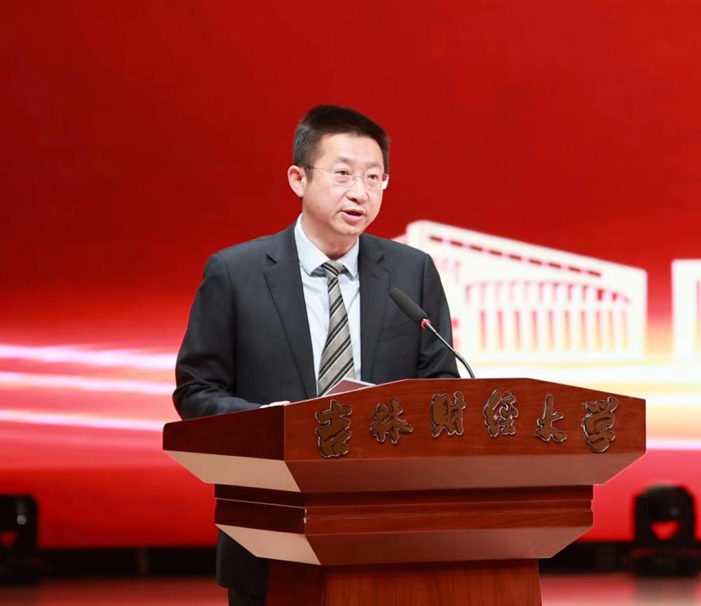 最后,校党委书记孙杰光围绕“高质量党建引领学校高质量发展”作部署。孙杰光指出,2022年是党和国家历史上极为重要的一年。党的二十大胜利召开,擘画了全面建设社会主义现代化国家、以中国式现代化全面推进中华民族伟大复兴的宏伟蓝图,吹响了奋进新征程的时代号角。2022年也是学校发展史上不平凡的一年,在疫情四次反复冲击的影响下,学校党委坚持以习近平新时代中国特色社会主义思想为指导,坚持服务国家重大战略需求和振兴吉林发展需要的办学方向,以高质量党建引领高质量发展,交出了一份疫情防控与学校事业发展双胜利的优异答卷。2023年,学校党委将始终坚持以党的政治建设为统领,扎实开展学习贯彻习近平新时代中国特色社会主义思想主题教育,坚持不懈用党的创新理论武装凝心铸魂;始终坚持以党的全面领导为引领,紧扣应用研究型大学办学定位,聚焦立德树人和学科建设“两大任务”,聚焦“双一流”“双特色”建设,加快推进决策咨询和成果转化,着力提高人才自主培养质量,持续提升学校国际化水平和教育保障能力,全面促进学校内涵式高质量发展;始终坚持“党管干部、党管人才”原则,突出政治标准,树立正确选人用人导向,加强干部教育培训和管理监督,建立健全干部担当作为的激励和保护机制,深化人才发展体制机制改革,扎实开展“干部人才建设年”活动;始终坚持以大抓基层的鲜明导向为引领,突出增强政治功能和组织功能,着力抓强院系组织力建设,抓实党务工作者队伍,强化党员党性锤炼,提高基层党组织的凝聚力、向心力、战斗力;始终坚持思想政治工作守正创新,坚持不懈用习近平新时代中国特色社会主义思想铸魂育人,深入推动习近平新时代中国特色社会主义思想和党的二十大精神进教材进课堂进头脑,进一步完善“大思政”工作体系,加强师德师风和思想政治工作队伍建设,实现立德铸魂育人;始终坚持以全面推进从严治党为引领,履行好各级干部主体责任,强化政治监督,不断深化和巩固拓展巡视整改成效,全面加强纪律作风建设和党风廉政建设;始终坚持以总体国家安全观为引领,健全安全工作体制机制,严格落实意识形态工作责任制,压紧压实安全稳定责任,防范校园安全风险,加强校园疫情防控能力建设,维护校园安全稳定。孙杰光要求,全体师生员工要认真落实党的二十大精神和全国两会精神,紧紧围绕教育强国、教育强省、科技强省、人才强省的战略目标,对标国内一流财经大学的宏伟目标,对标年度重点任务,以“拼”的精神、“闯”的劲头、“实”的作风,积极为学校奋力谱写中国式现代化进程中,推动吉林全面振兴取得新突破的贡献吉财智慧和吉财力量。