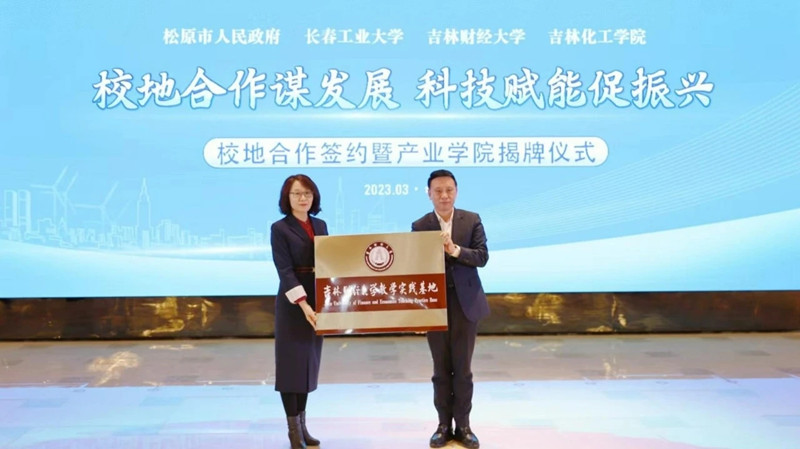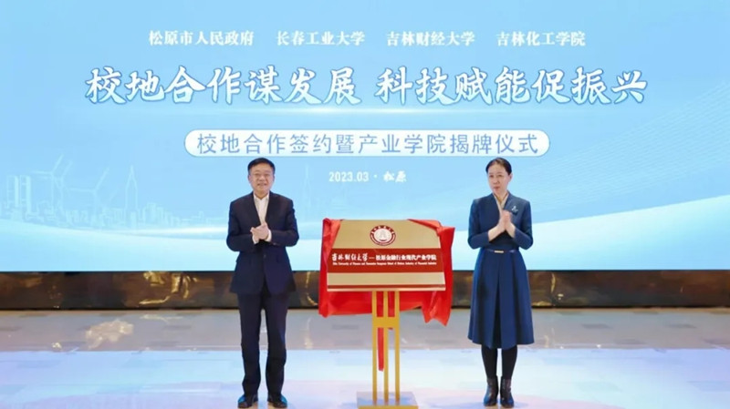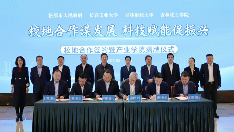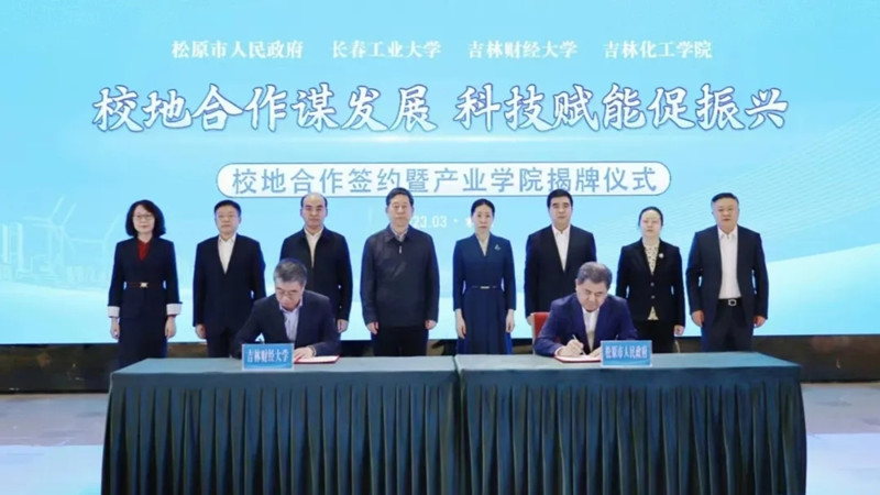 学校党委书记孙杰光在会上致辞,他首先对松原市委、市政府为推动双方合作向更深层次迈进给予的支持和帮助表示感谢,特别是疫情防控期间学生离校返乡过程中给予的帮助表达深深谢意。他表示,这次双方签订系列务实合作协议,是深入贯彻落实习近平总书记关于教育的重要论述和视察吉林重要讲话重要指示精神,认真落实省委“一主六双”高质量发展战略,落实就业优先战略和教育强省、人才强省战略的重要举措,相信本着优势互补、创新机制、共同发展、资源共享的合作宗旨,政产学研用必将深度融合,力争实现在财政税收、普惠金融、营商环境、冰雪经济、绿色康养、数字经济、电商产业、乡村振兴、生态旅游等方面共同组建研究、研学基地,为“一市、一地、一城”高质量发展增智、聚势、赋能,共同为在中国式现代化进程中为推动吉林全面振兴取得新突破贡献智慧和力量。